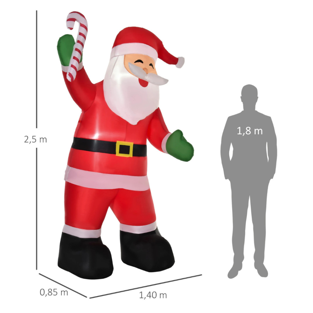 Tegye felejthetetlenné az idei karácsonyt ezzel a 2,5 méter magas, felfújható Mikulással, aki vidám mosolyával és cukorpálcájával azonnal ünnepi hangulatot teremt.