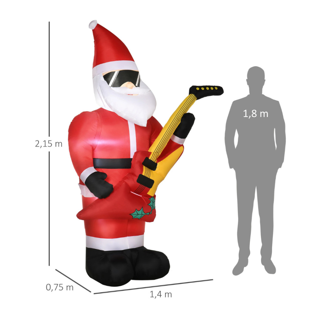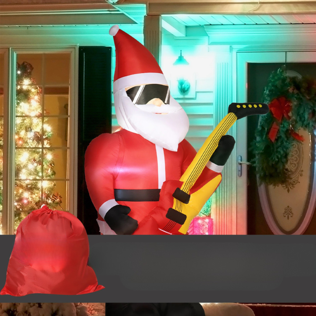 Felfújható Mikulás LED-világítással és elektromos gitárral 215 cm magas kültéri karácsonyi dekoráció