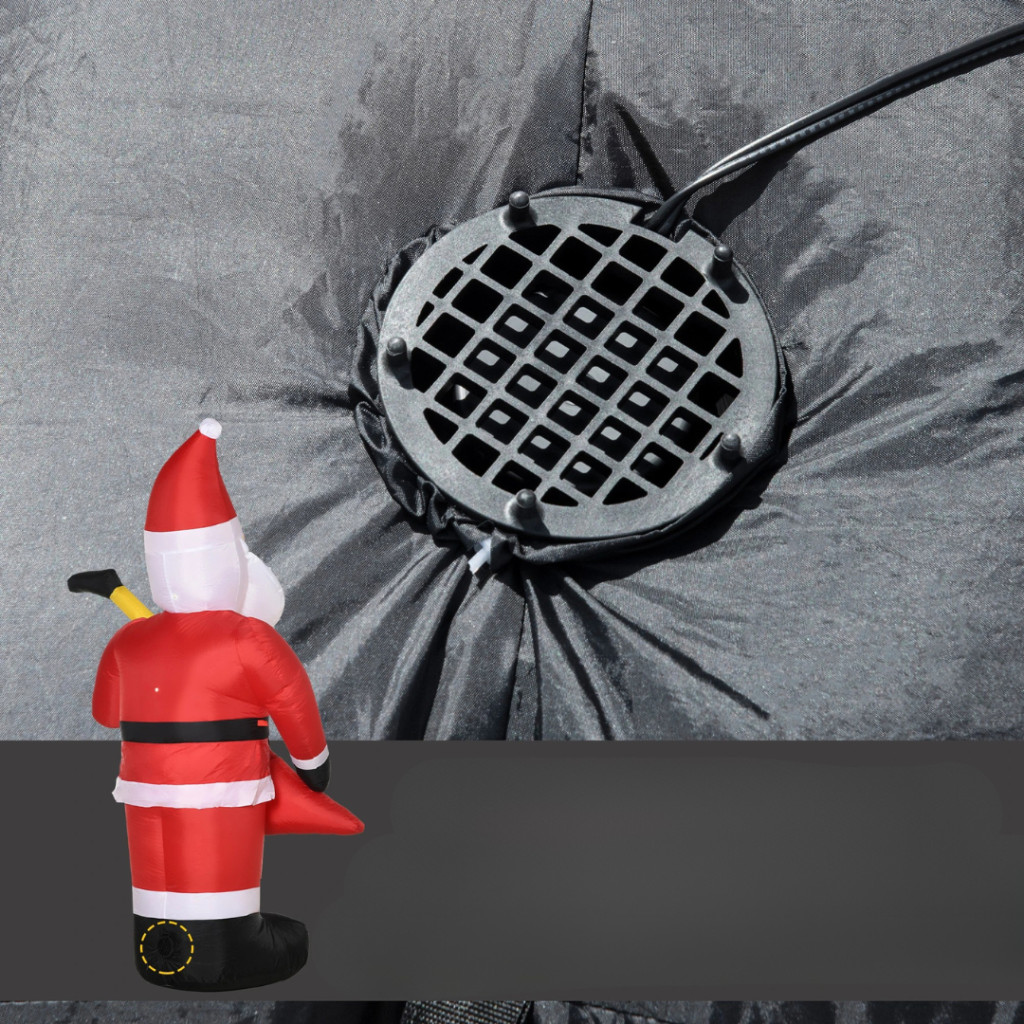 A beépített elektromos ventilátor segítségével a Mikulás néhány perc alatt automatikusan felfújódik, amint csatlakoztatja a konnektorhoz.