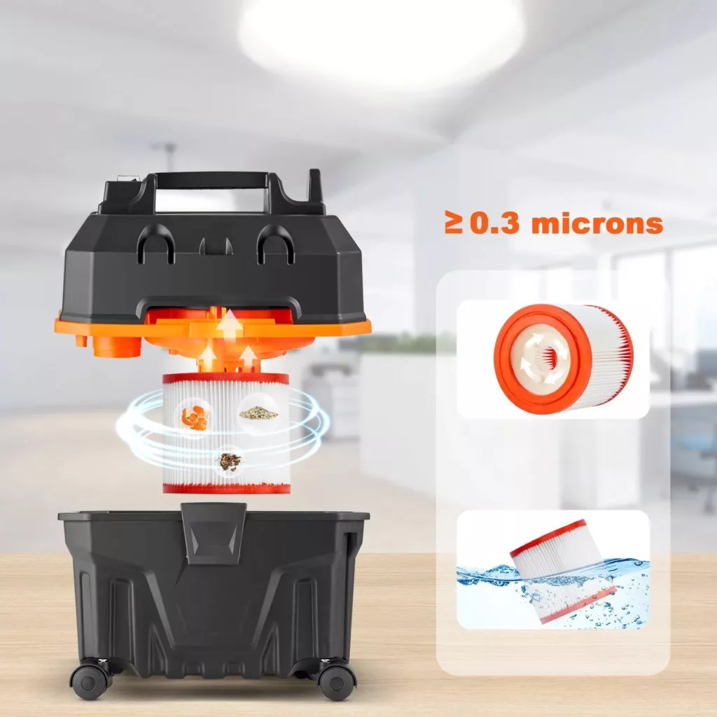 A porszívó mosható, újrahasználható patronfilterrel működik, így nem kell állandóan új szűrőt vásárolnia.​