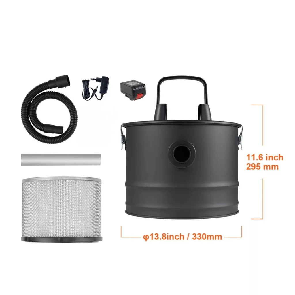 Ez egy 15 literes kapacitású, akkumulátoros hamuporszívó, amelyet kifejezetten kandallók, pelletkályhák, fatüzelésű kályhák, grillsütők és kisebb beltéri/kültéri takarítási feladatok gyors elvégzésére terveztek. A kb. 150 W teljesítményű motor és 10 kPa vákuum elegendő szívóerőt biztosít a kihűlt hamu, por és könnyebb szennyeződések eltávolításához.
