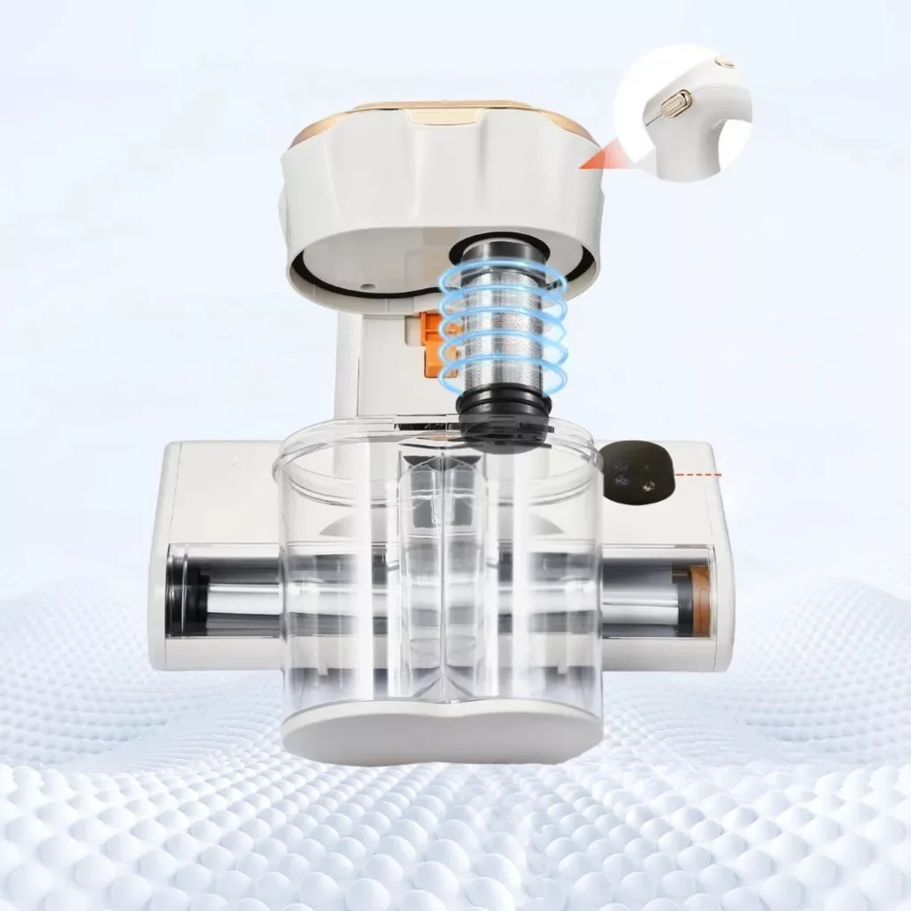Ez az elegáns, fehér‑rózsaarany matracporszívó 550 W teljesítménnyel és 18 kPa szívóerővel kifejezetten arra készült, hogy mélyen kitisztítsa a matracot, ágyat, kanapét és más kárpitozott felületeket. A nagy sebességű, 27 000 fordulat/perc sebességgel működő hengerkefe és az erős vákuum együtt hatékonyan távolítja el a port, hajszálakat, bőrlemezeket, pollent és más szennyeződéseket a textilszálak közül, így frissebb, higiénikusabb alvókörnyezetet teremt.