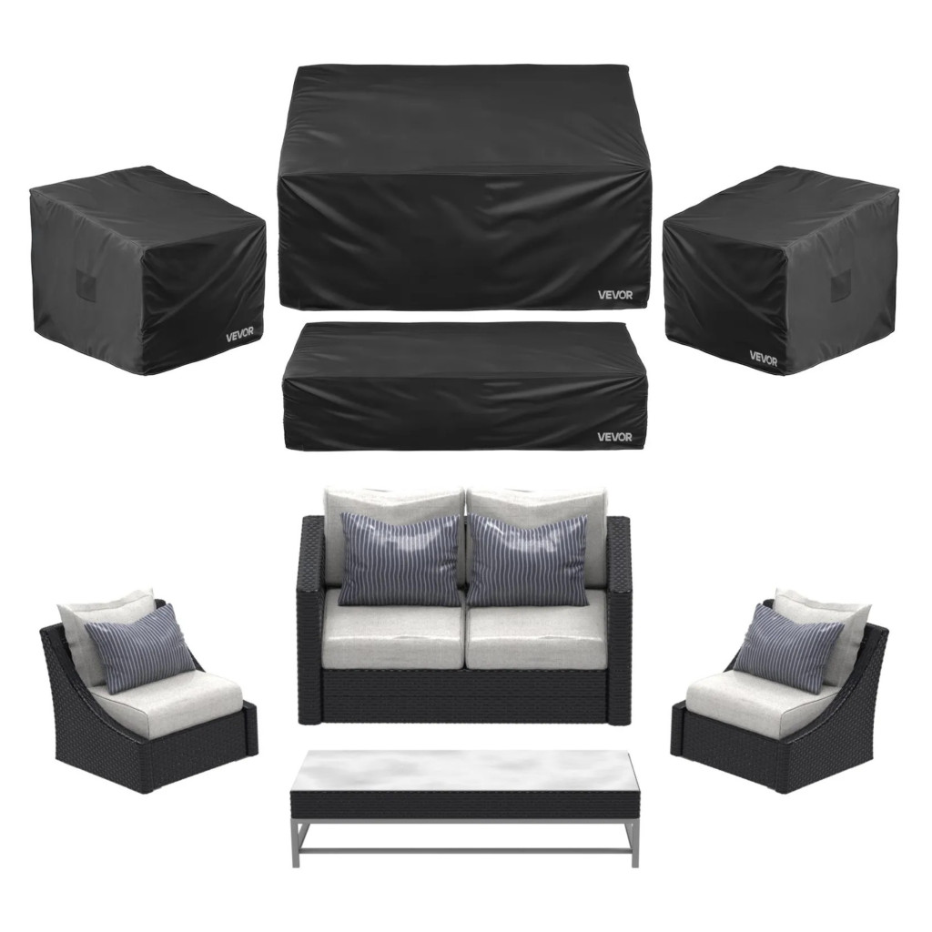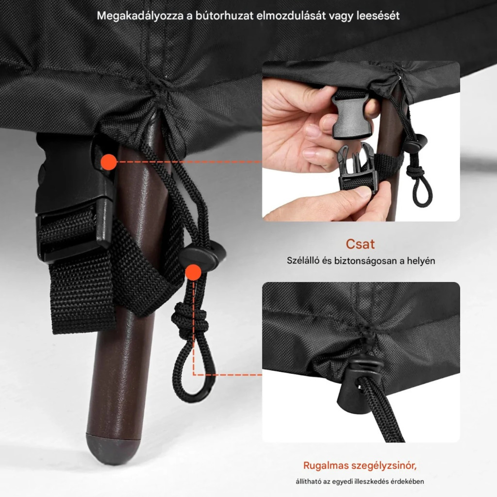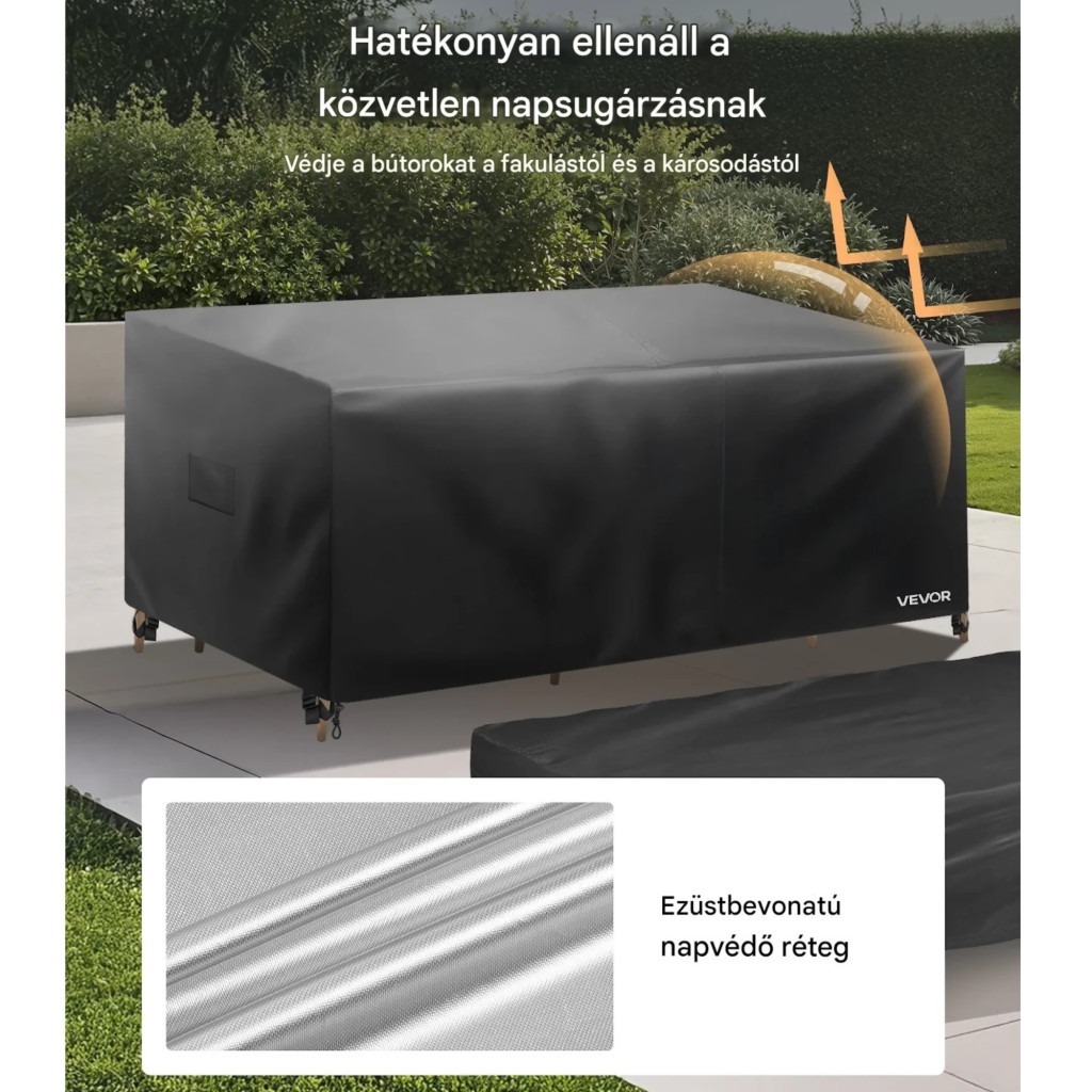 Kerti bútor takaró szett fekete 4 részes, vízálló, 420D Oxford védőhuzat teraszbútorokhoz