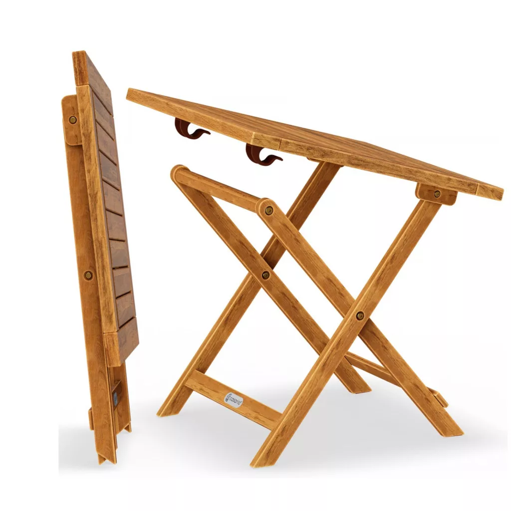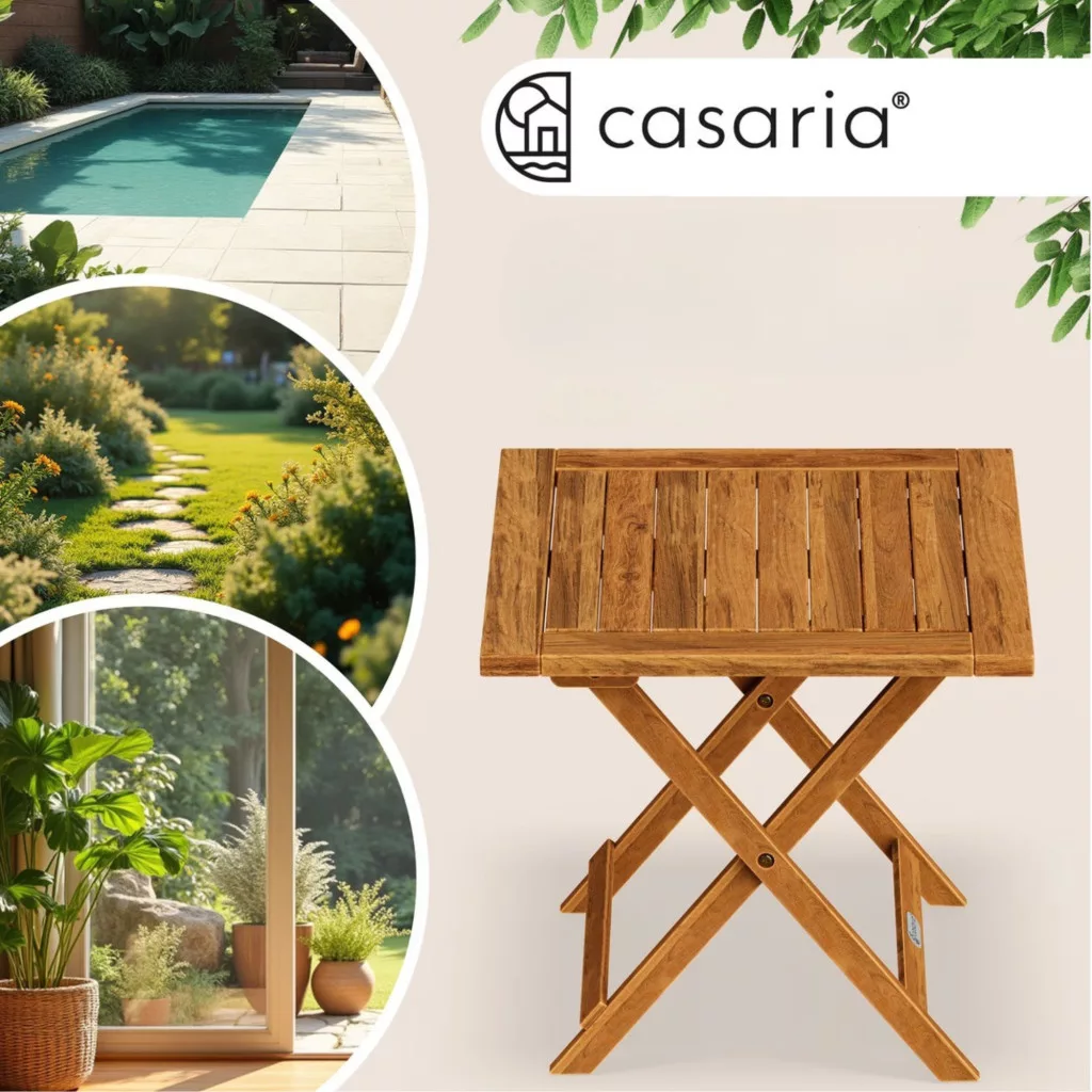 Ez a prémium minőségű összecsukható kerti asztal ideális választás, ha Ön egy kis helyigényű, mégis esztétikus és tartós megoldást keres. A természetes fa megjelenés és a praktikus kialakítás tökéletes kombinációt kínál erkélyre, teraszra vagy akár beltéri használatra is.