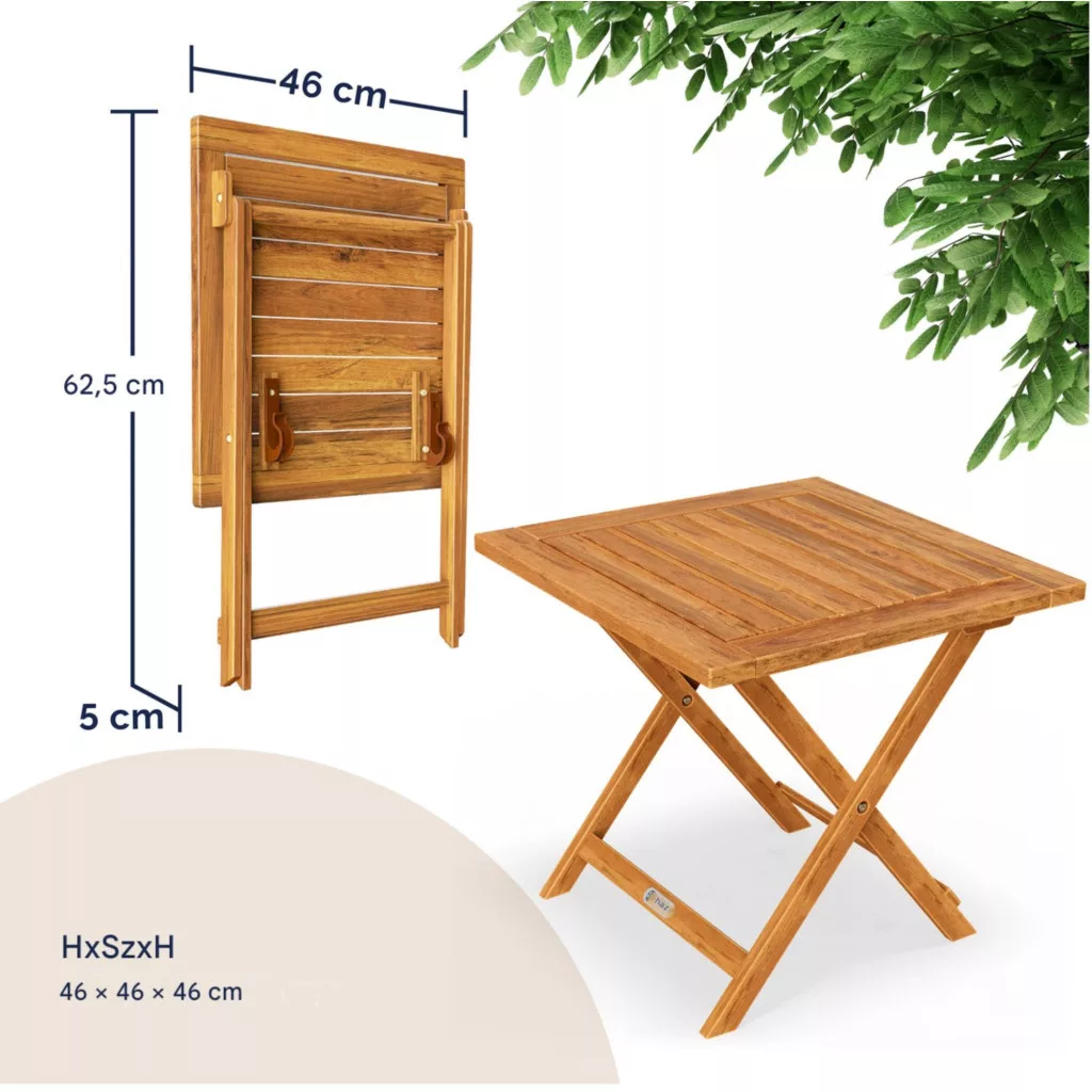 Összecsukható akácfa kerti asztal 46x46x46 cm kompakt és elegáns kültéri asztal