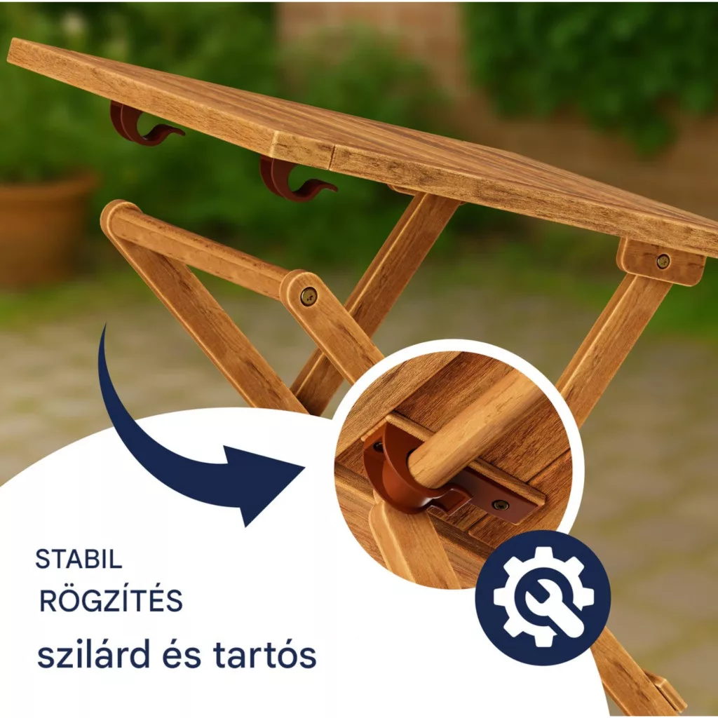 • összecsukható kerti asztal, amely könnyen tárolható