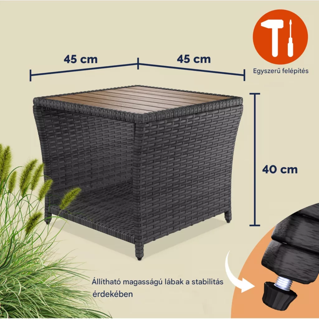 Polyrattan kerti dohányzóasztal