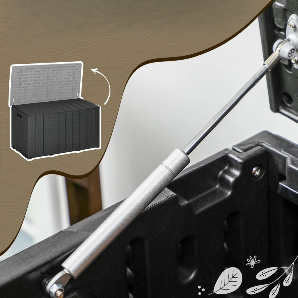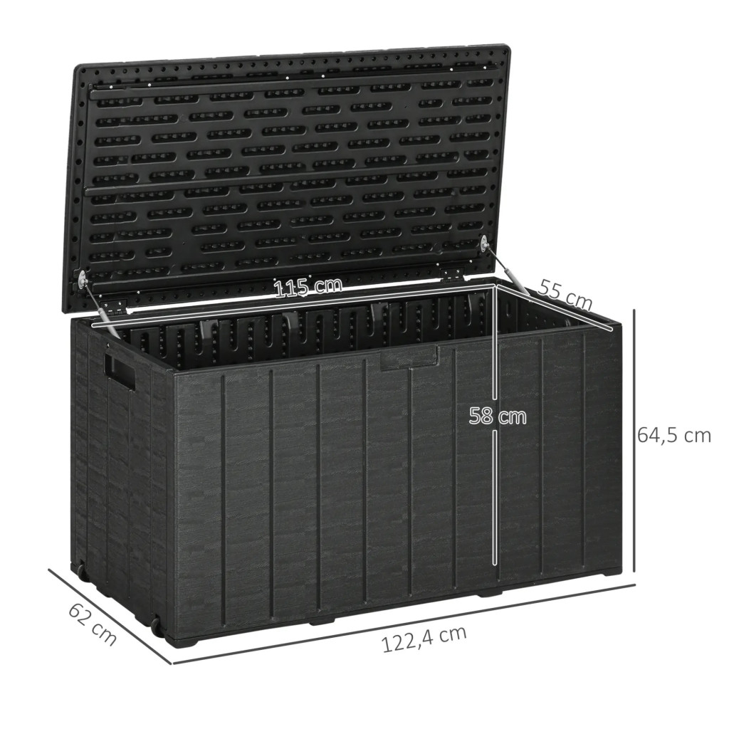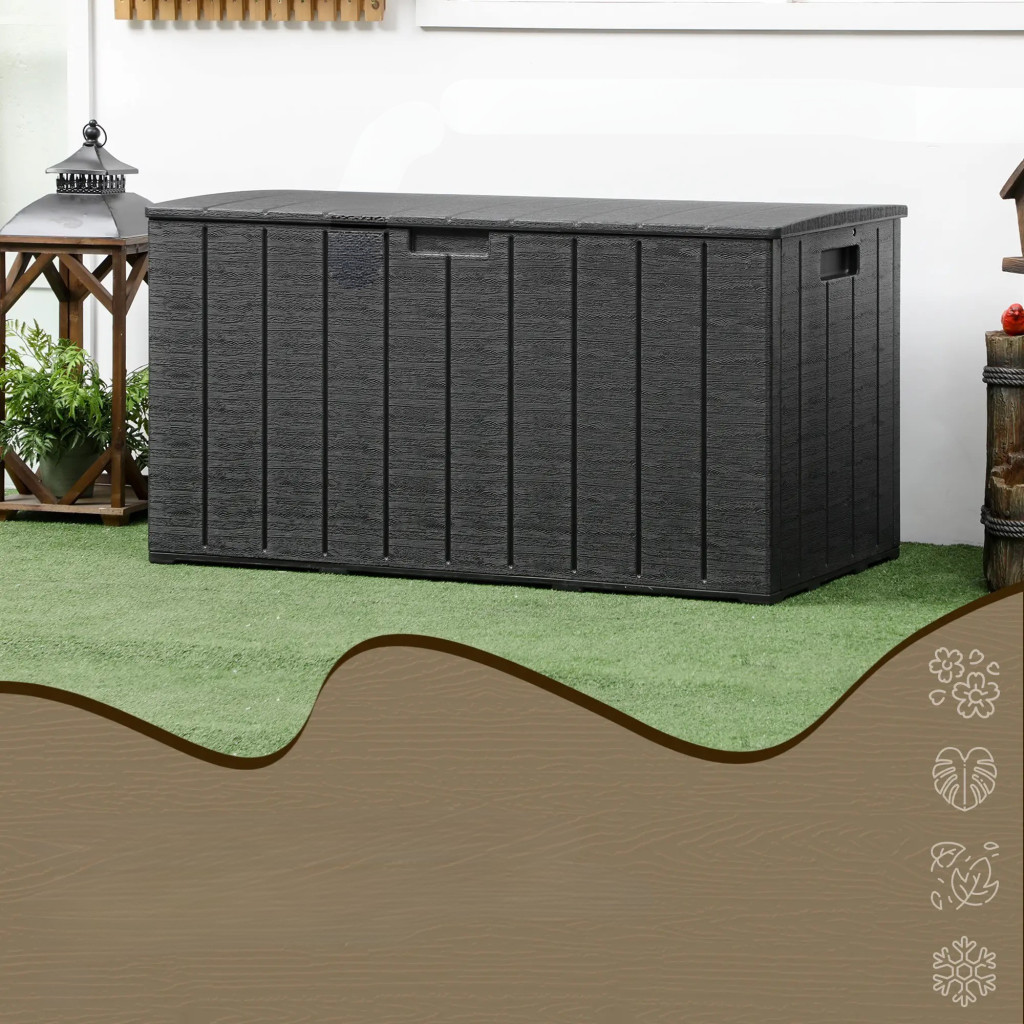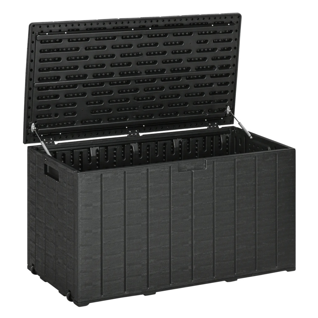 A kerti párnatartó láda 366L tágas belső térrel rendelkezik, amely elegendő helyet biztosít különböző kültéri tárgyak számára.