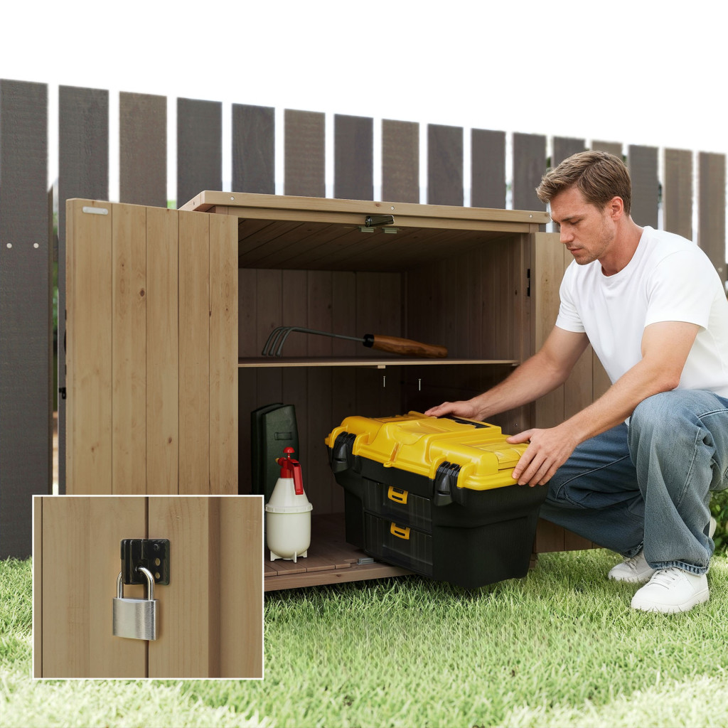 A dupla ajtós kerti szerszámtároló segít rendben tartani a kültéri felszereléseket, miközben védi azokat az időjárás hatásaitól.