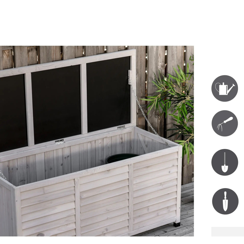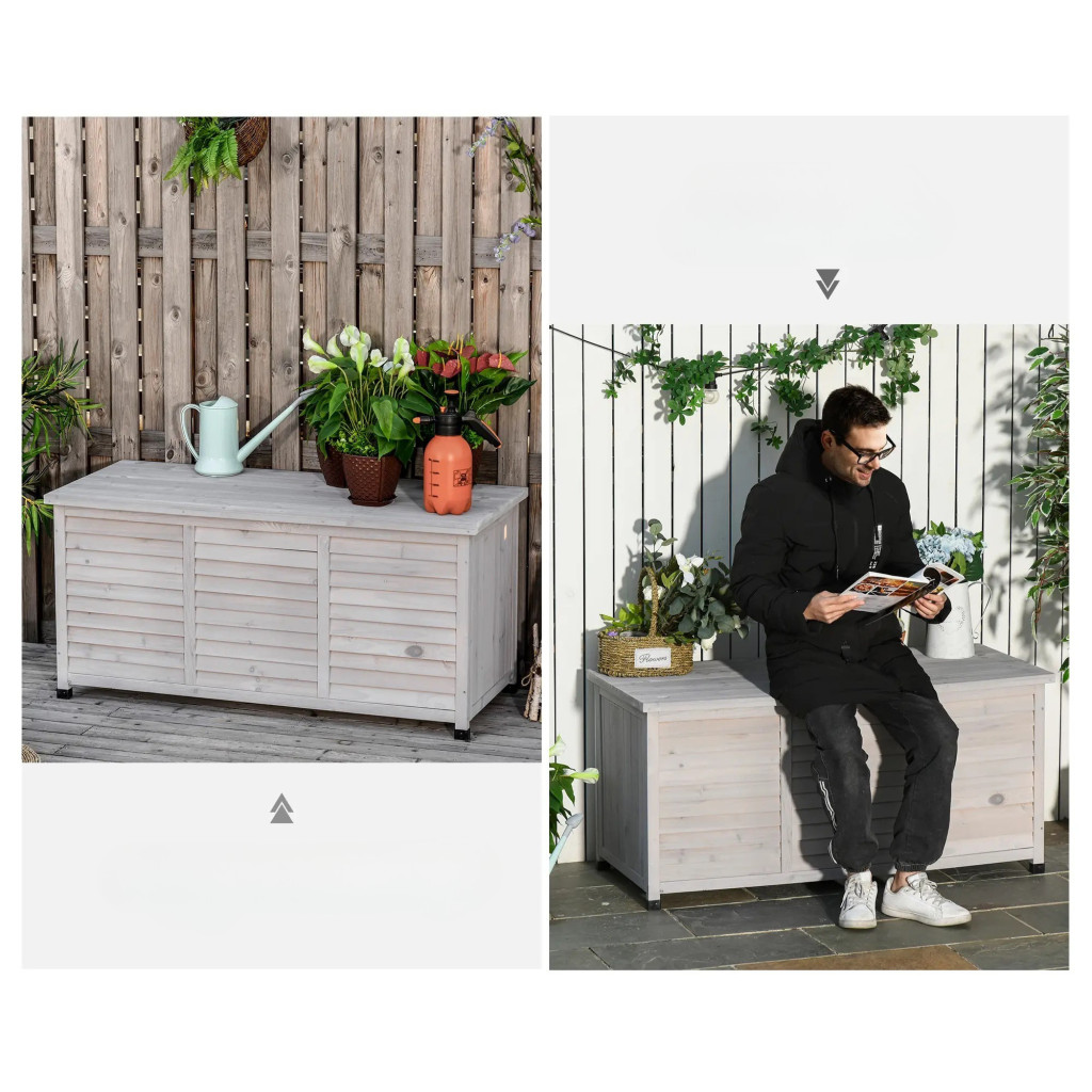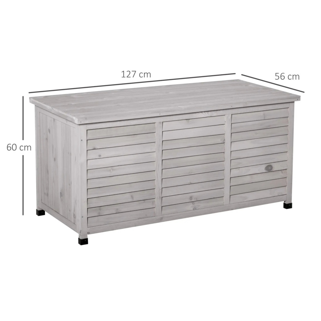 Kerti tároló láda 127x56x60 cm időjárásálló kerti párnatartó box lucfenyő szürke