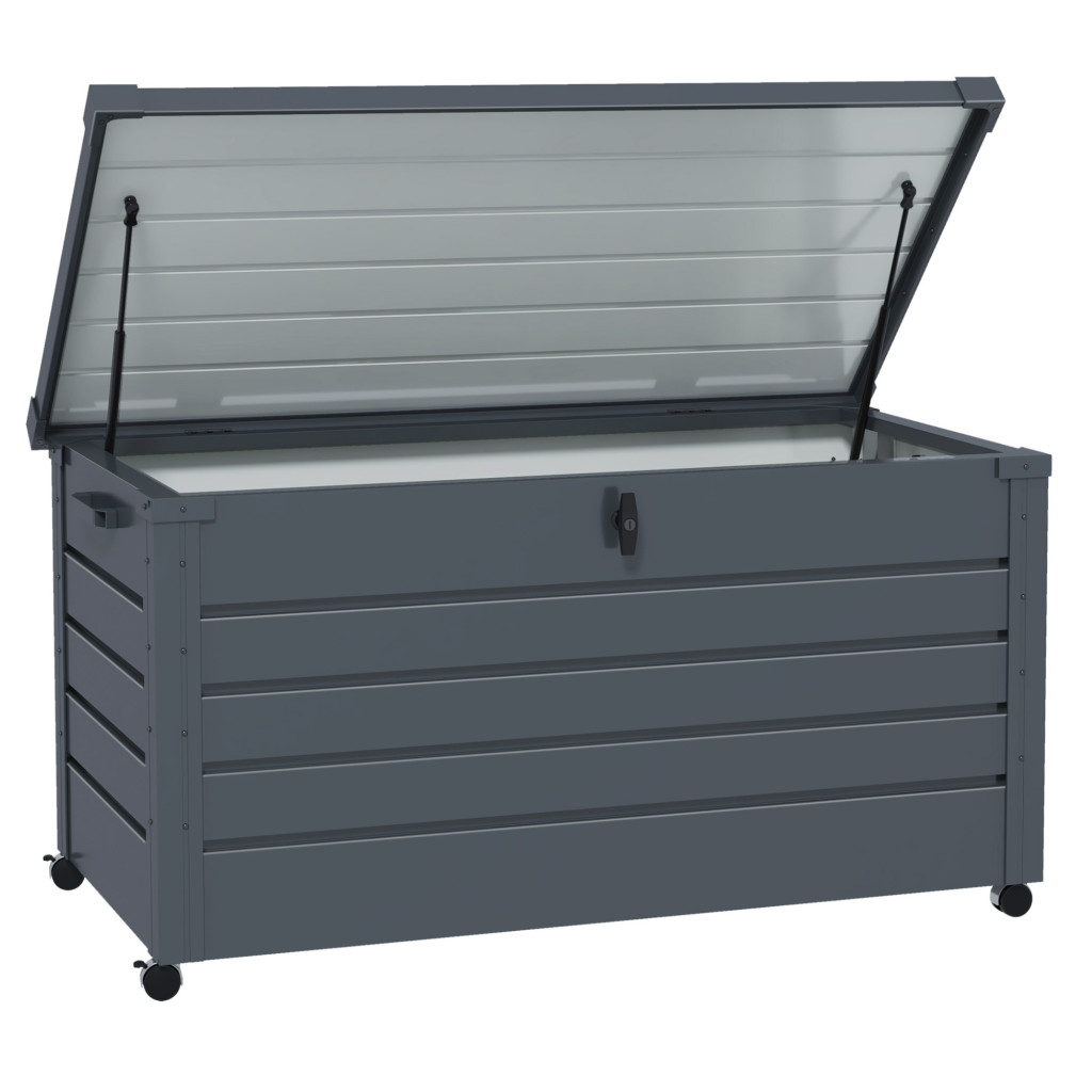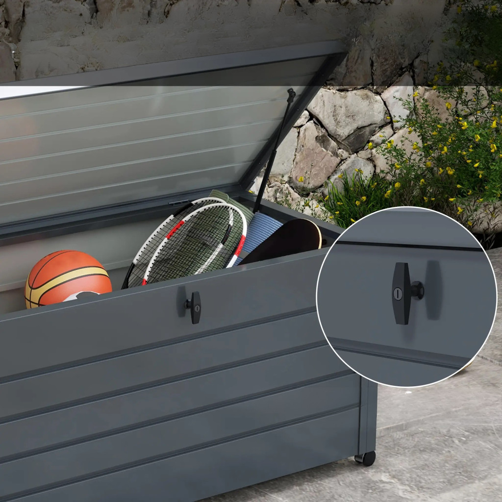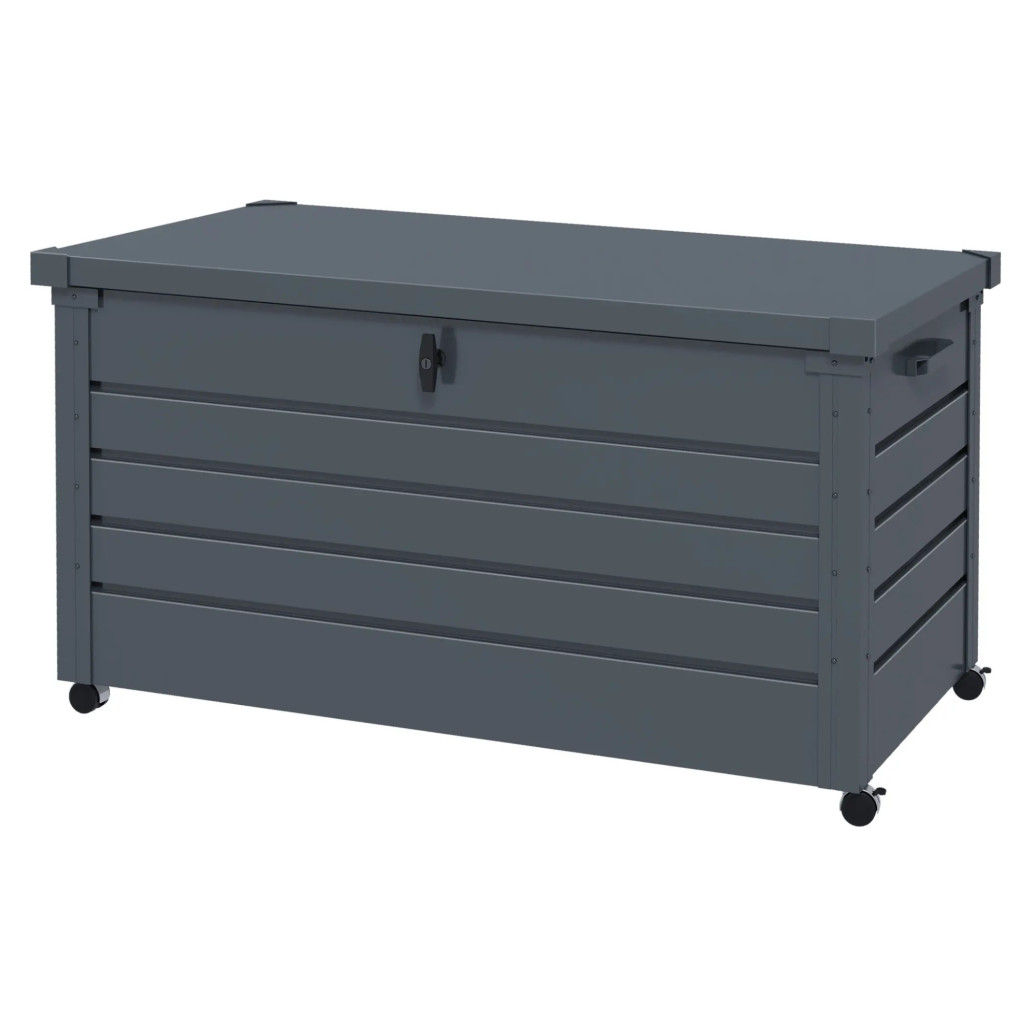 Kerti tároló láda 311L 120x62x65 cm nagyméretű kerekes kerti párnatartó box sötétszürke