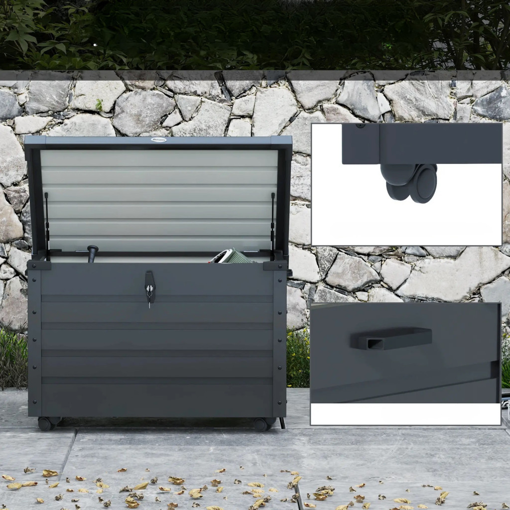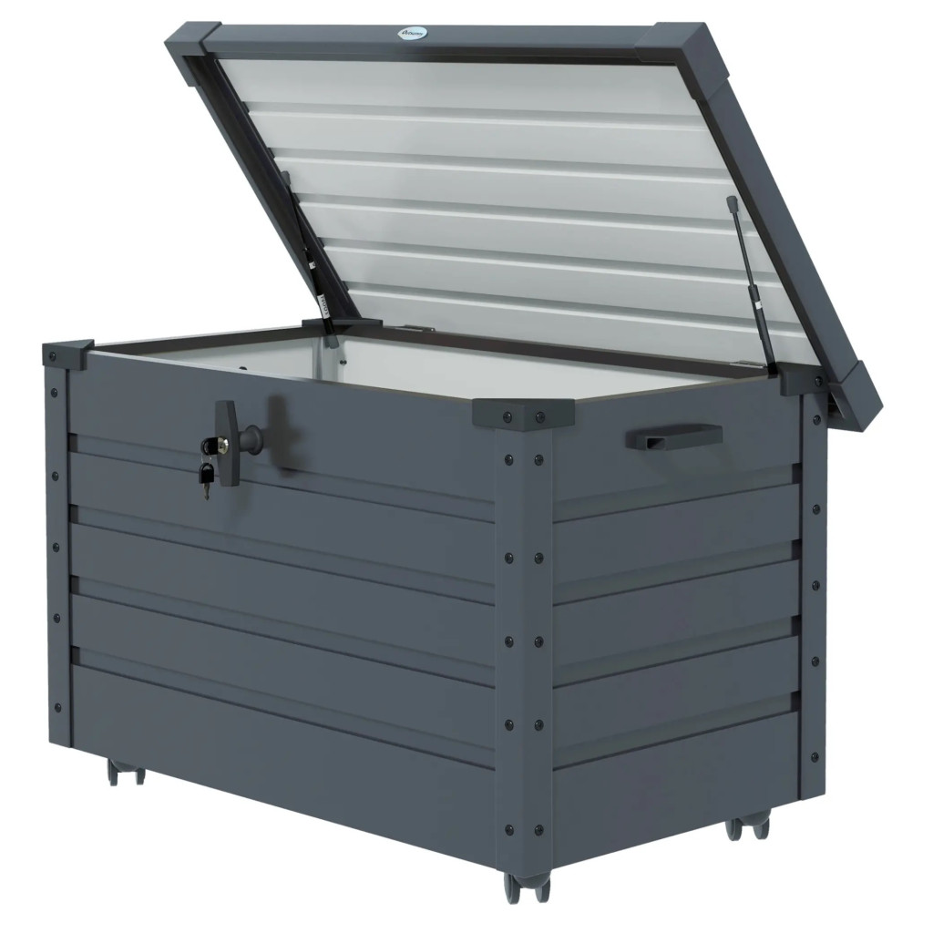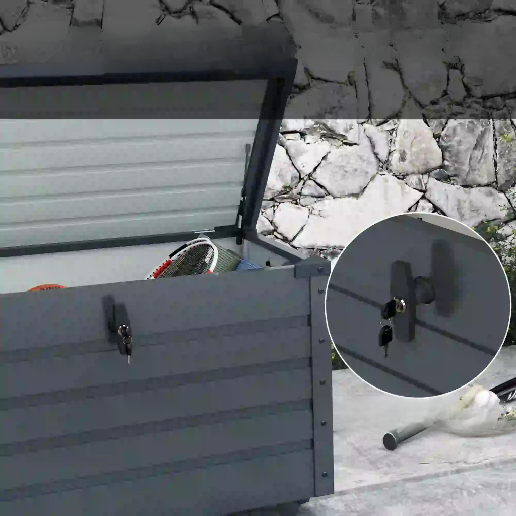 A horganyzott acél kerti tároló box rendkívül tartós és ellenáll a kültéri használat során jelentkező igénybevételnek.