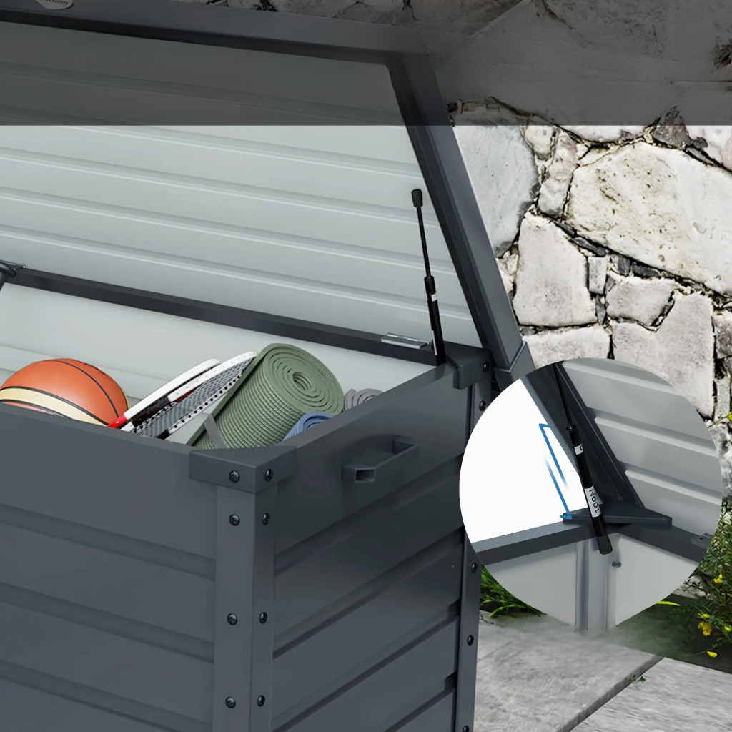 A kerti tároló láda 295L elegendő helyet biztosít a különböző kültéri felszerelések számára.