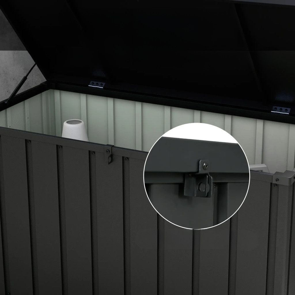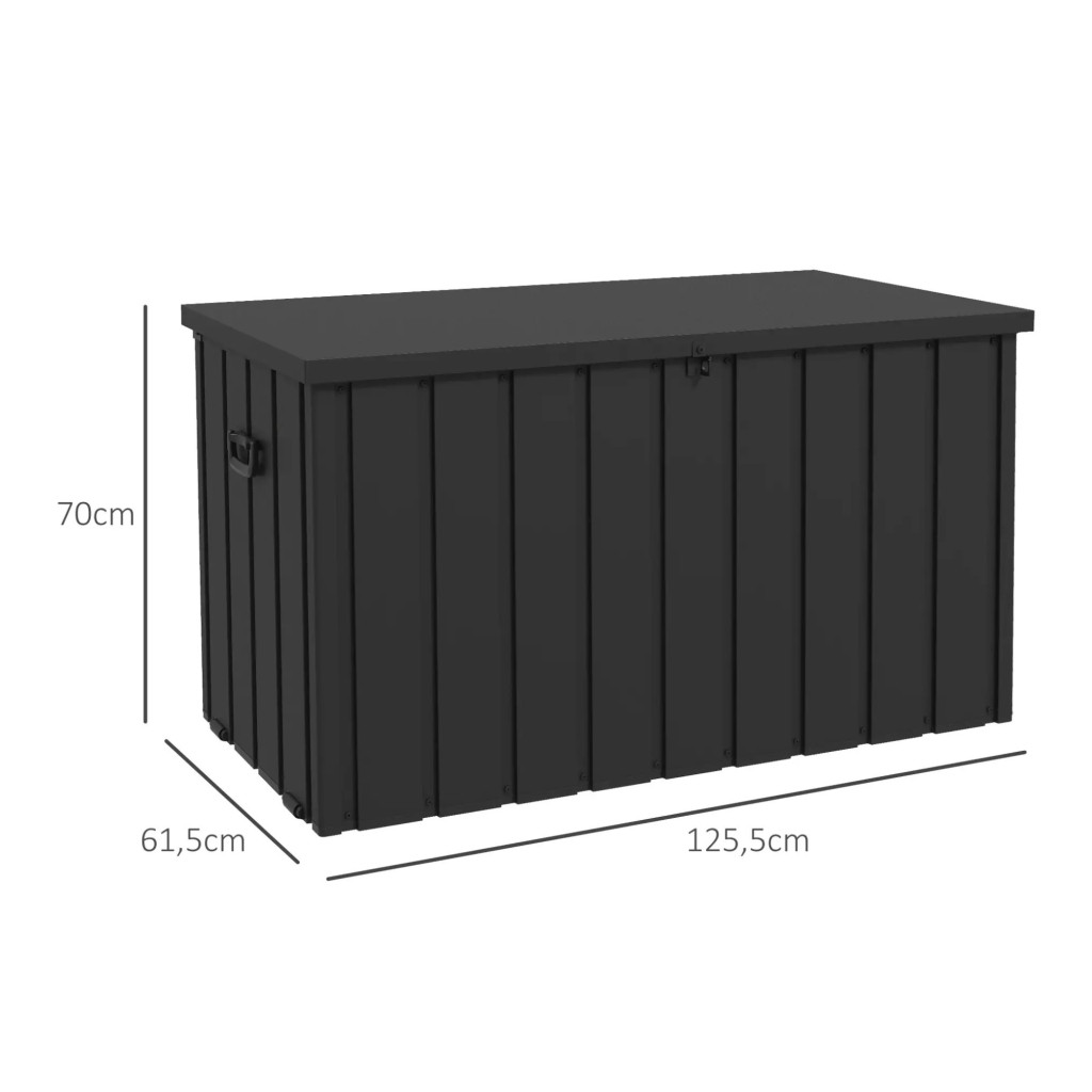 Kerti tároló láda 450L 125x61x70 cm nagyméretű kerti párnatartó tároló doboz sötétszürke