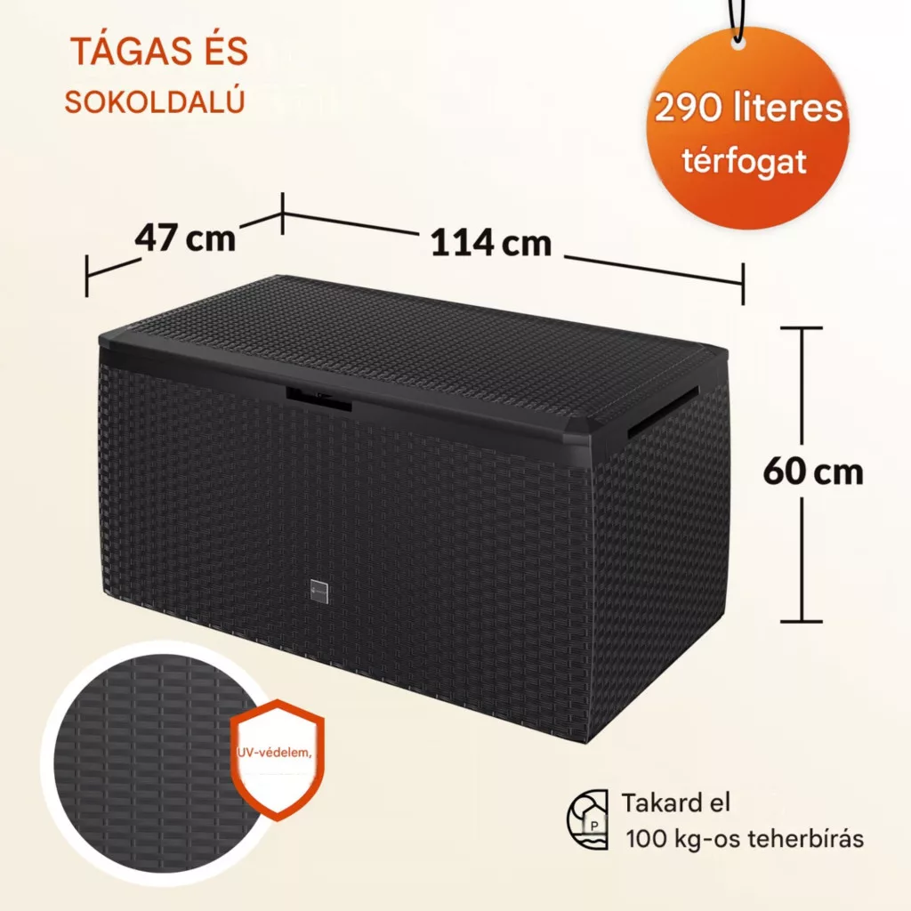 • ideális ülőpárnák, takarók, kerti eszközök tárolására