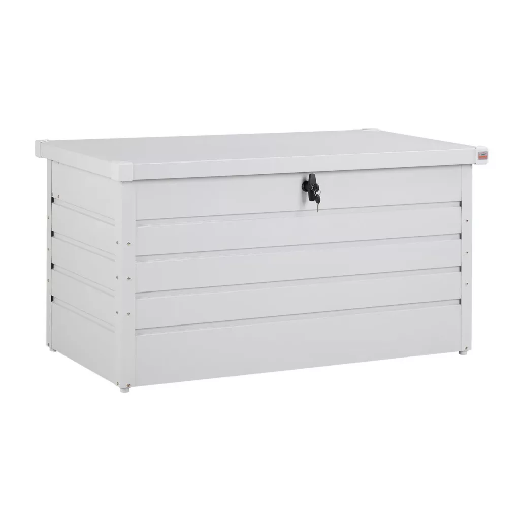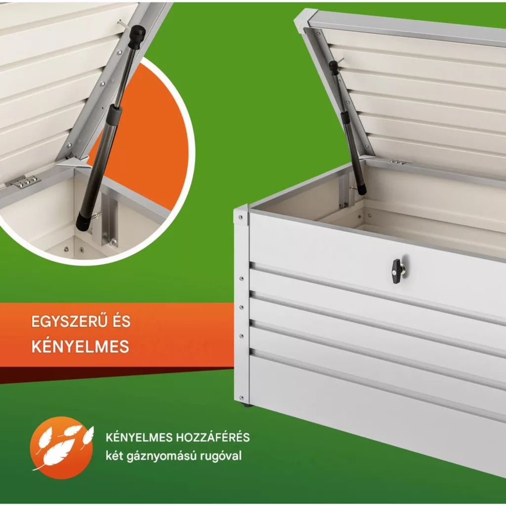 Ez a fém kerti tároló láda 385 literes kivitelben ideális választás, ha Ön tartós, biztonságos és nagy kapacitású tárolási megoldást keres. A modern, letisztult megjelenésű kerti tároló láda fém kivitelben tökéletesen illeszkedik kertbe, teraszra vagy erkélyre.
