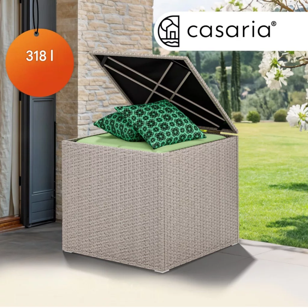 Ez a kerti tároló láda 318 literes kivitelben ideális választás, ha Ön prémium megjelenésű és tartós tárolási megoldást keres. A világos, letisztult megjelenésű polyrattan kerti tároló krém színben tökéletesen illeszkedik modern és klasszikus kültéri környezetbe egyaránt.