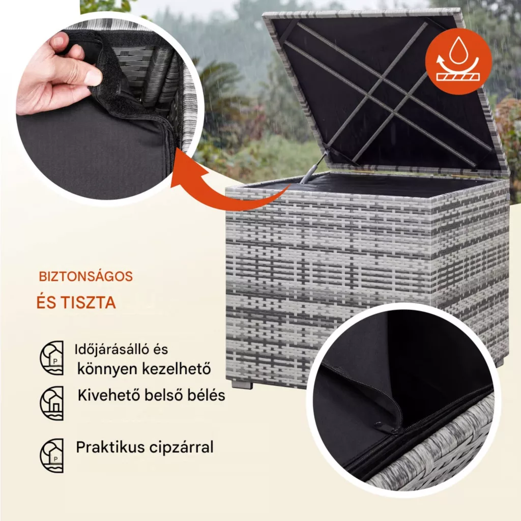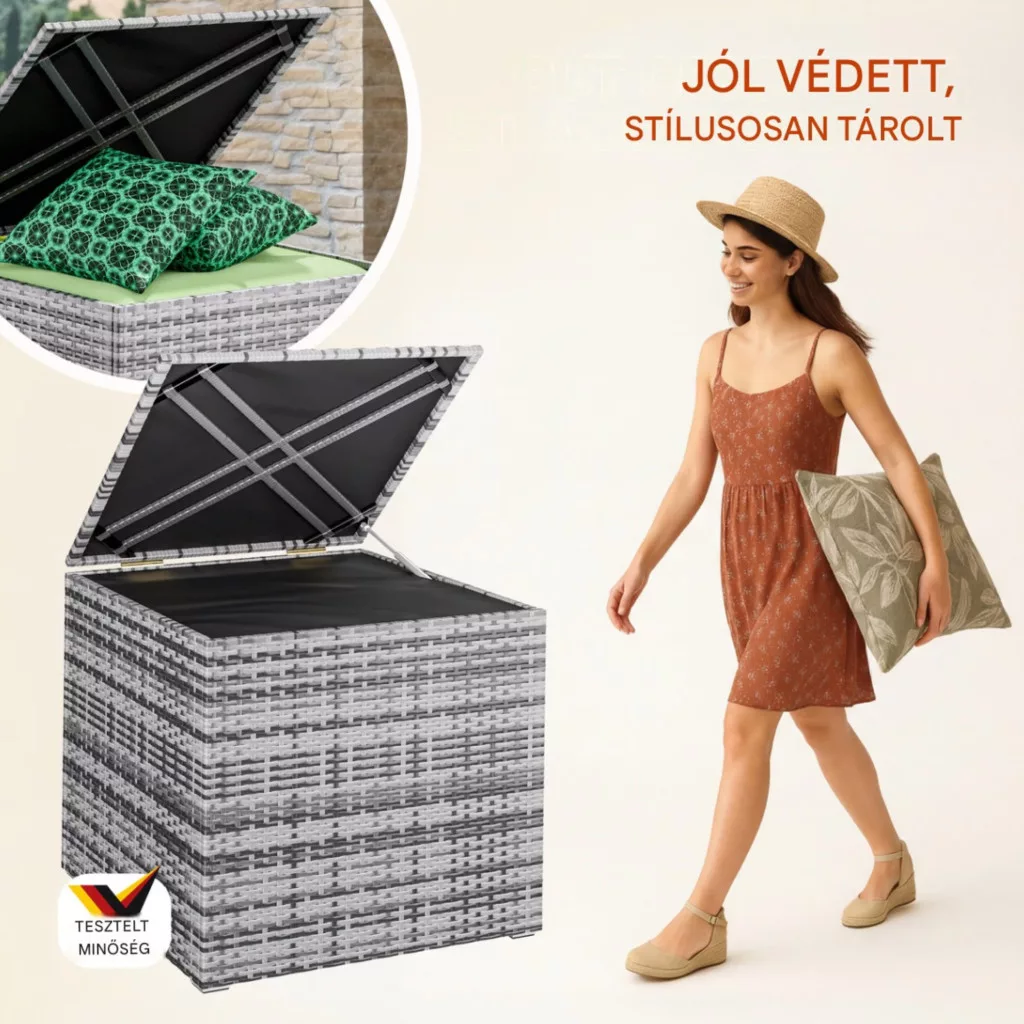 • ideális ülőpárnák, takarók, kerti kiegészítők tárolására