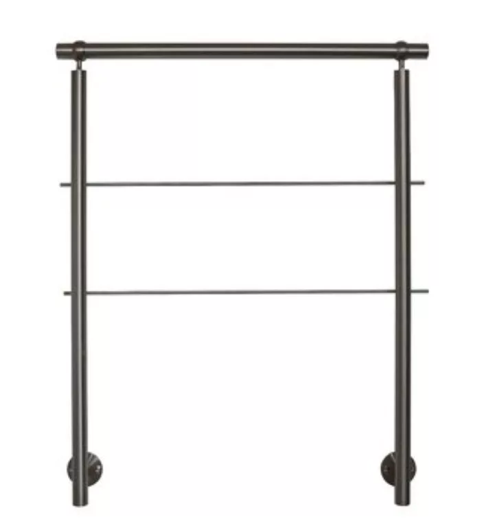 Rozsdamentes acél lépcsőkorlát oldalsó rögzítéssel 180 cm hosszú 2 oszloppal 2 db keresztrúddal 10 mm távtartó