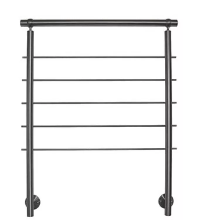 Rozsdamentes acél lépcsőkorlát oldalsó rögzítéssel 200 cm hosszú 3 oszloppal 5 db keresztrúd 10 mm távtartó
