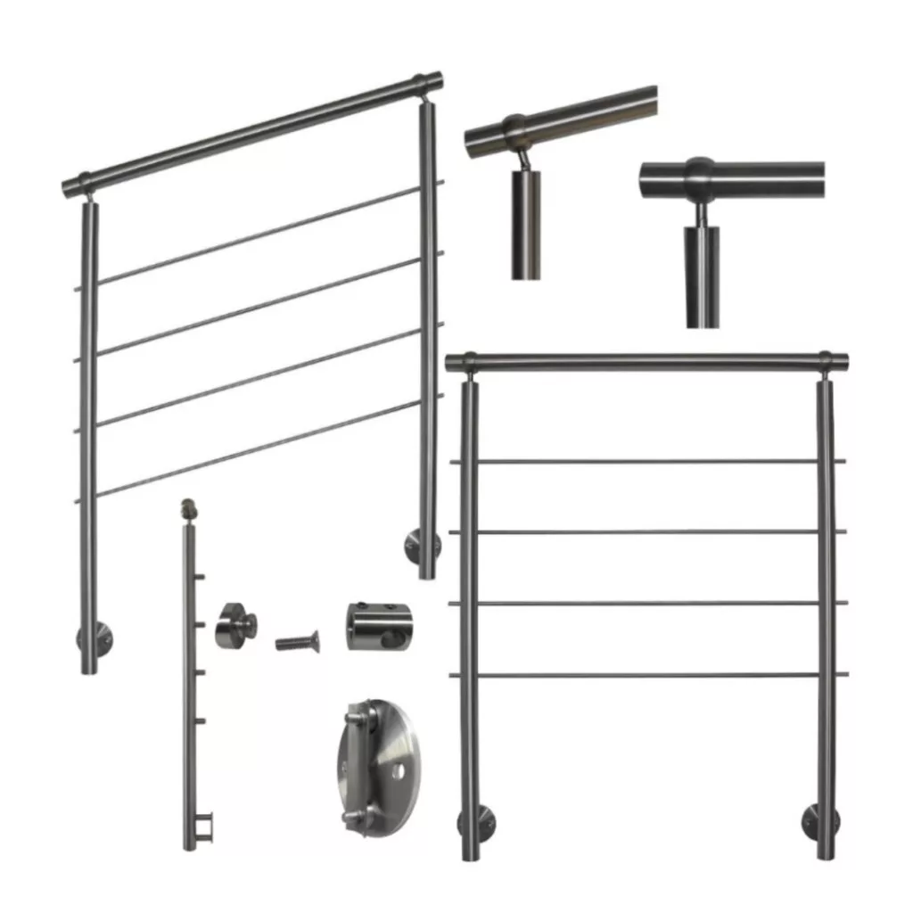 Az oszlopok és a korlát 42 mm-es rozsdamentes acélcsőből készülnek, melynek anyagának vastagság 2 mm.