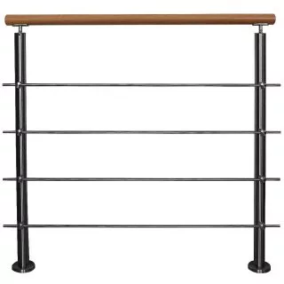 Rozsdamentes acél korlát bükk kapaszkodóval 150 cm 2 oszloppal és 4 db merevítő keresztrúddal