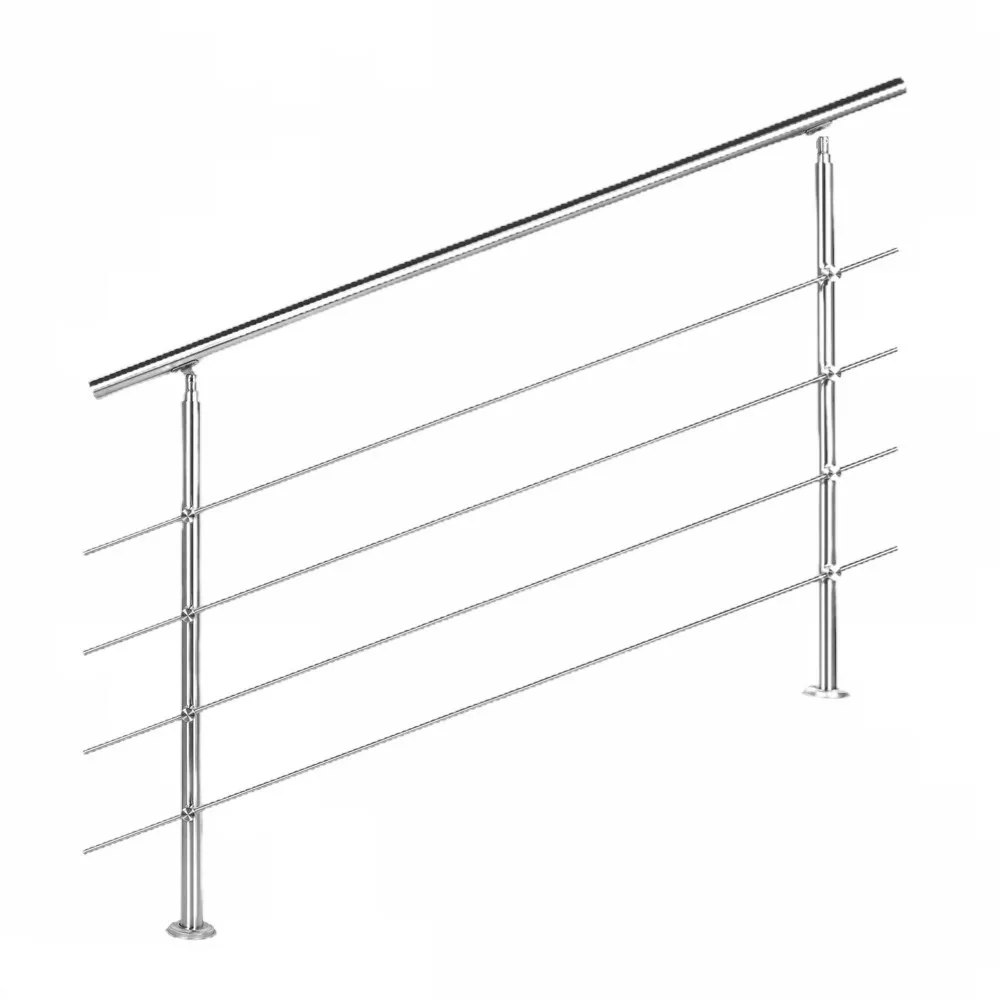 Lépcsőkorlát rozsdamentes 140 cm keresztrúd nélkül vagy 2-3-4-5 db leesést gátló keresztrúddal kapaszkodó 42 mm átmérővel saválló inox anyagból
