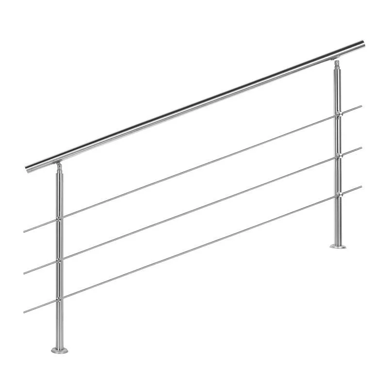 Lépcsőkorlát rozsdamentes 180 cm hosszú kapaszkodó 42 mm átmérővel  saválló inox anyagból, 3 darab leesést gátló keresztrúddal