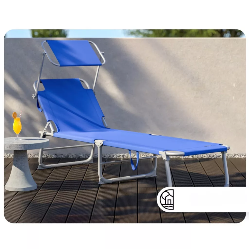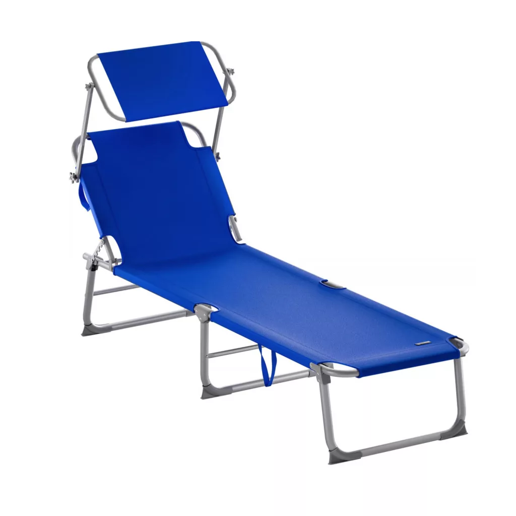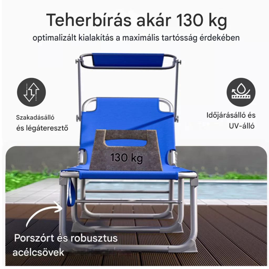 Összecsukható kerti napozóágy napellenzővel 195x60x30 cm kék alumínium kerti nyugágy