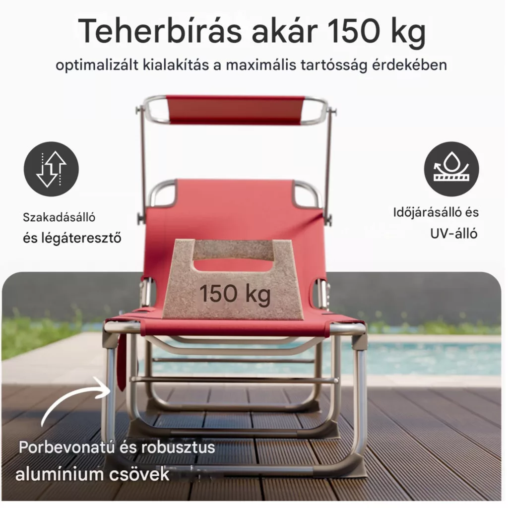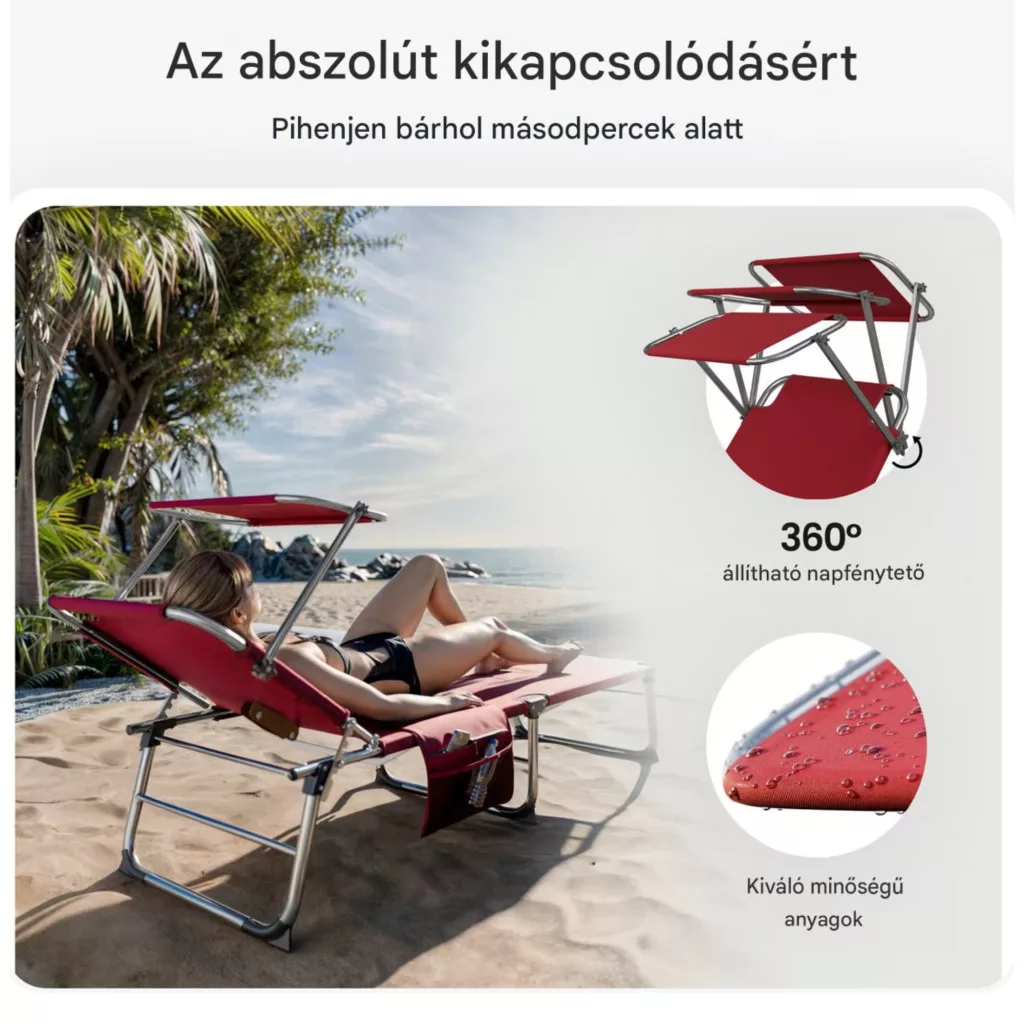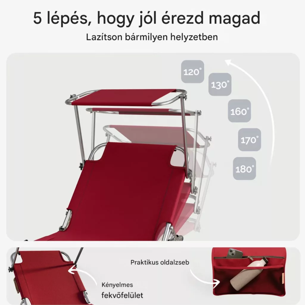 Kerti napozóágy napellenzővel Ibiza rubinvörös 190x59x29 cm összecsukható nyugágy