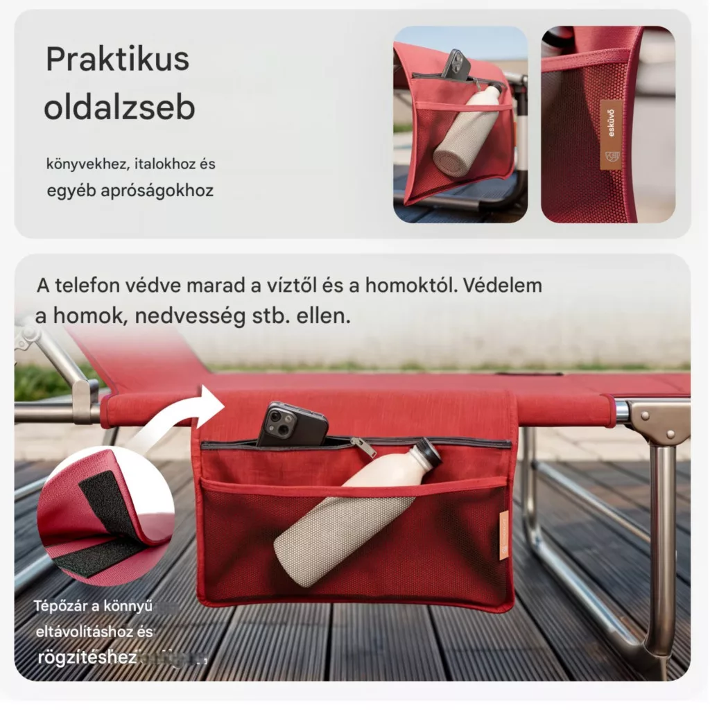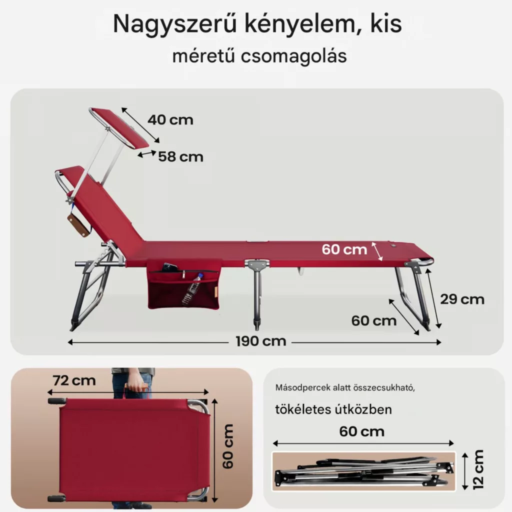 Ez az összecsukható kerti napozóágy napellenzővel ideális választás, ha Ön egy könnyen hordozható, mégis stabil és stílusos megoldást keres. A strandszék funkció, az állítható kialakítás és a praktikus tárolómegoldások garantálják a kényelmes pihenést bárhol.