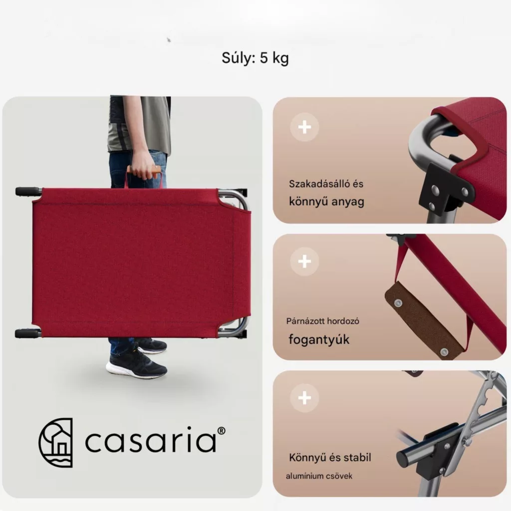 Élvezze a napsütést stílusosan ezzel a modern kialakítású kerti napozóágy modellel! Az Ibiza rubinvörös változata nemcsak kényelmet, hanem igazán feltűnő, elegáns megjelenést is biztosít. Ideális választás kertbe, teraszra, strandra vagy kempingezéshez – praktikus kialakításának köszönhetően strandszékként is tökéletesen használható.