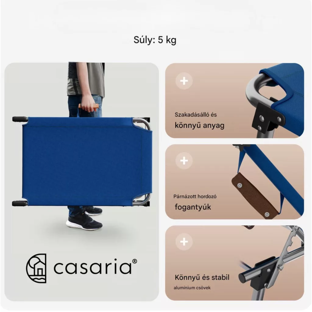 Élvezze a nyári kikapcsolódást ezzel a modern kialakítású kerti napozóágy modellel! Az Ibiza típusú, kék színű kivitel friss, letisztult megjelenést biztosít, miközben maximális komfortot nyújt. Tökéletes választás kertbe, teraszra, strandra vagy akár kempingezéshez, hiszen praktikus nyugágyként is használható.