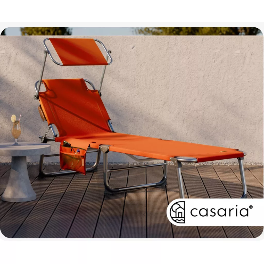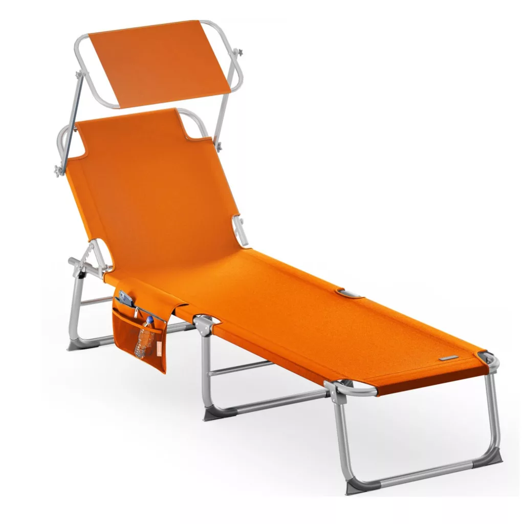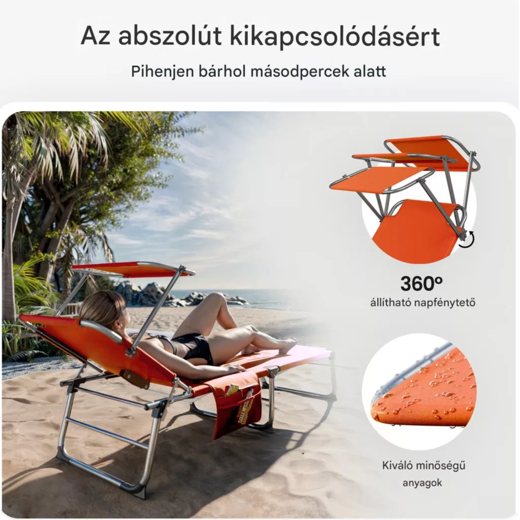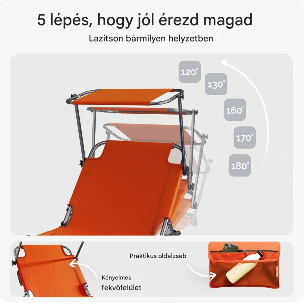 Kerti napozóágy napellenzővel Ibiza narancs 190x59x29 cm összecsukható nyugágy