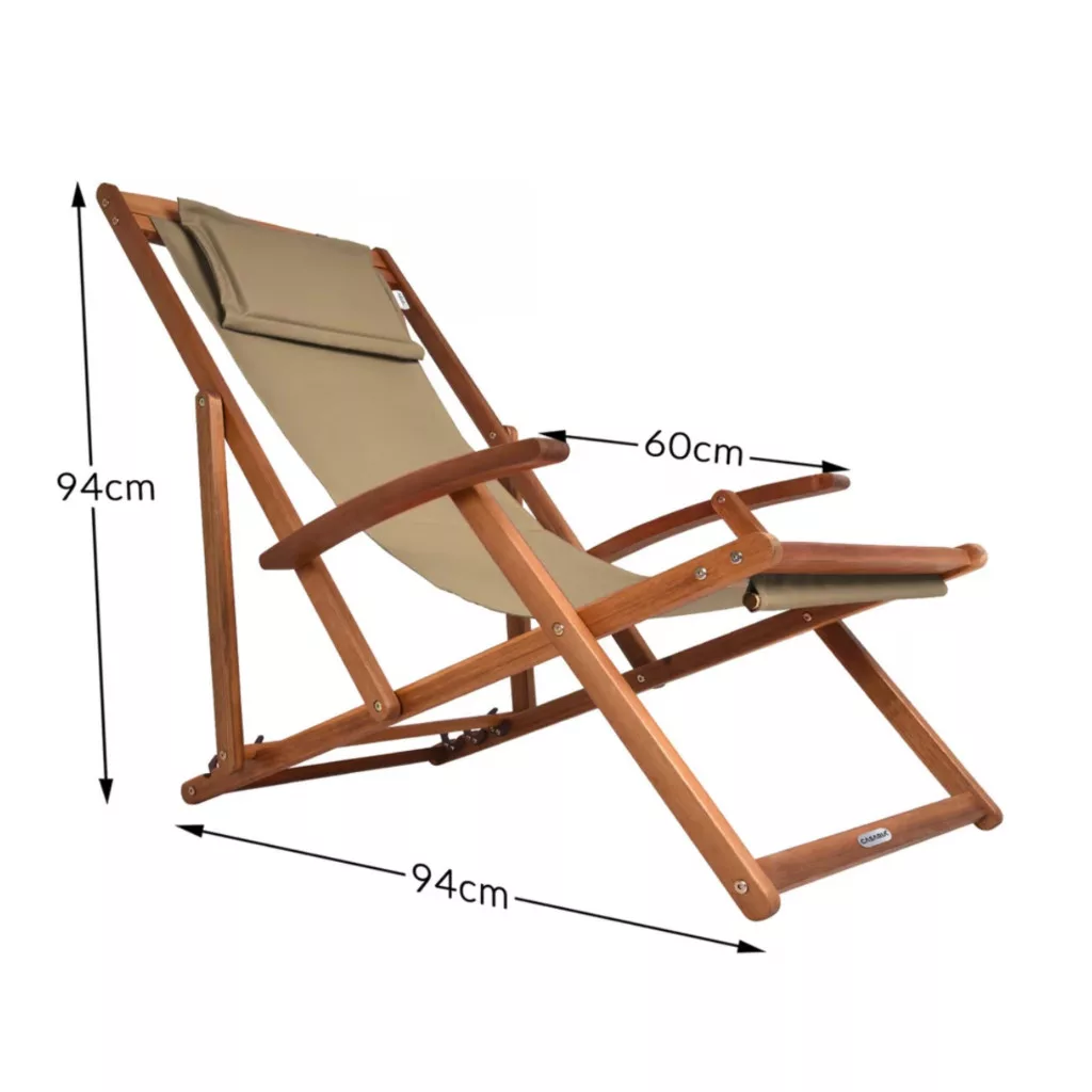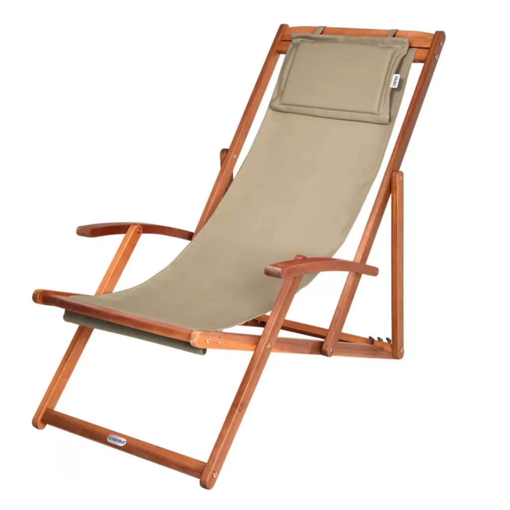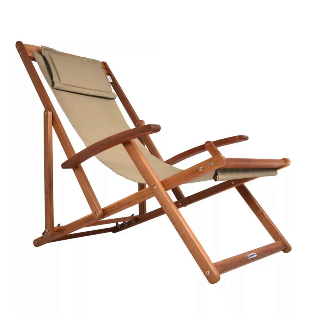 Ez a modell egyszerre funkcionál napozóágyként és strandszékként, így rendkívül sokoldalú.
