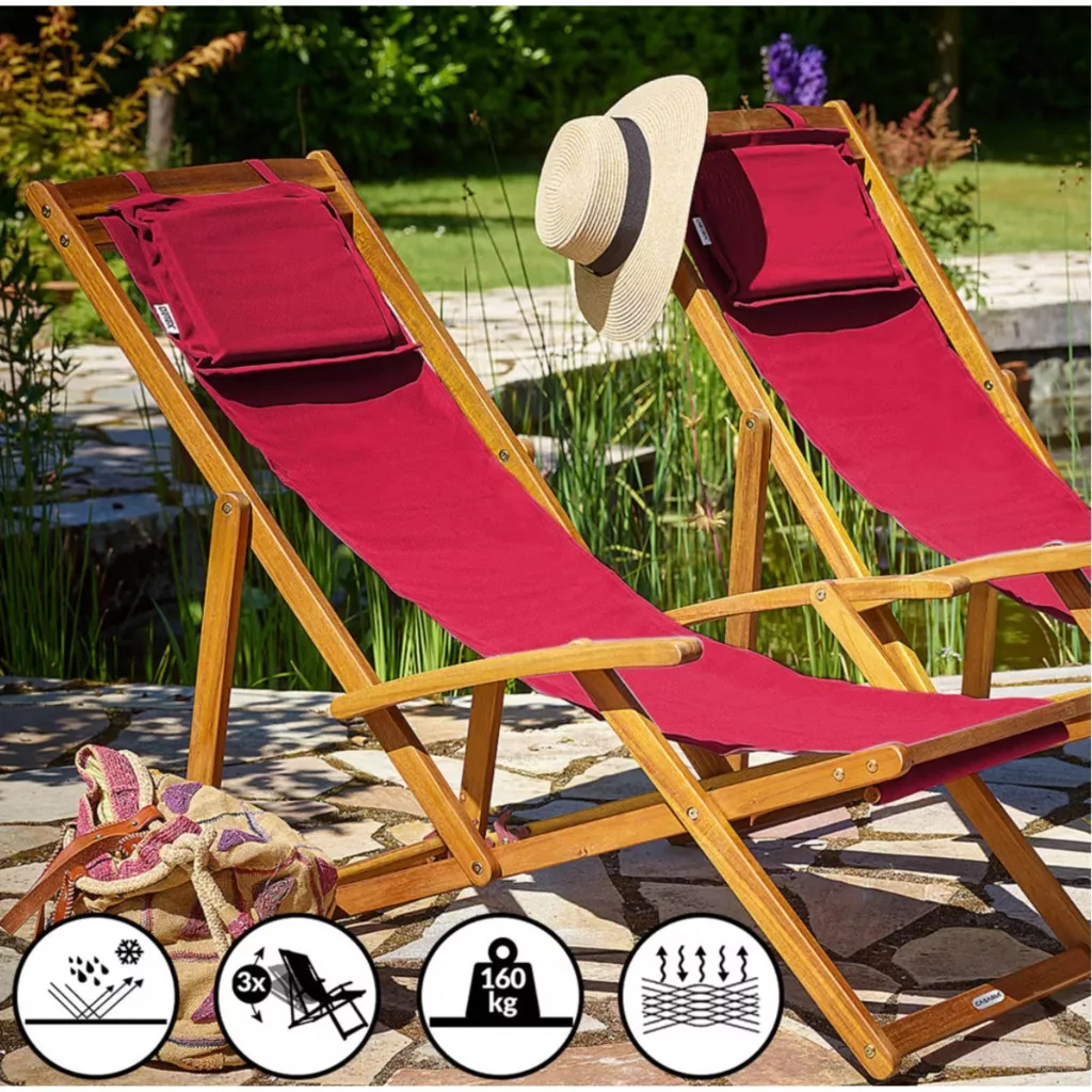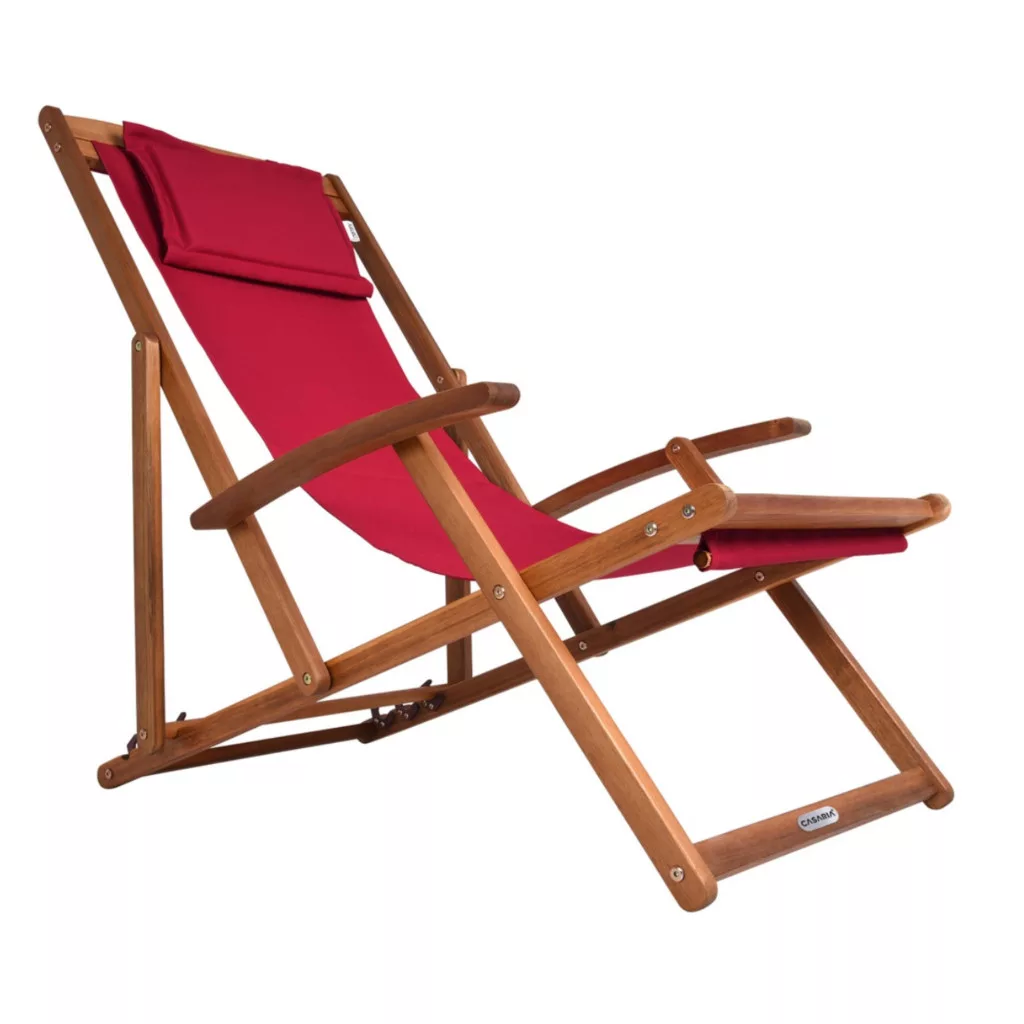 A prémium kivitelű kerti napozóágy akácfából ideális választás, ha Ön egy természetes megjelenésű, mégis rendkívül praktikus megoldást keres. A piros huzat modern és feltűnő megjelenést biztosít, miközben a kialakításnak köszönhetően strandszékként is kiválóan használható.