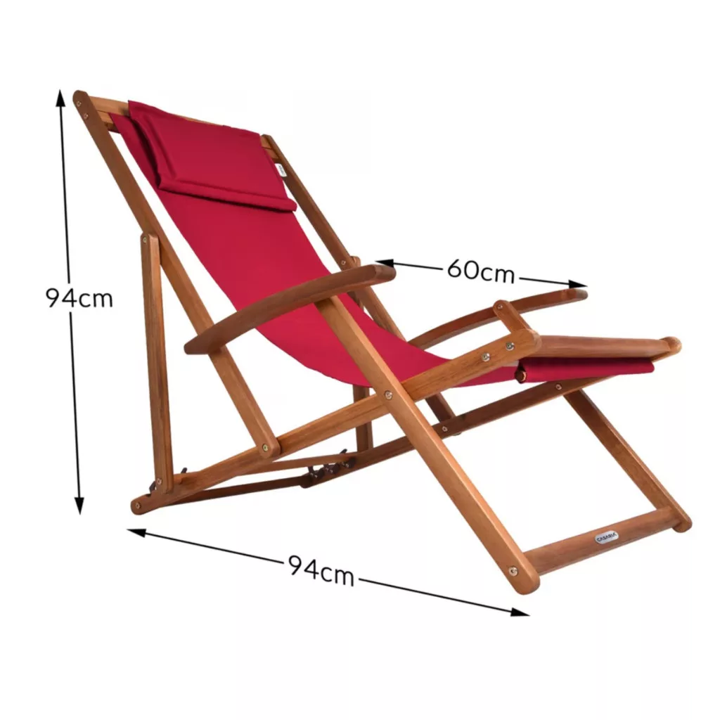 Kerti napozóágy akácfából 94x60x94 cm összecsukható strandszék, állítható háttámlával, piros