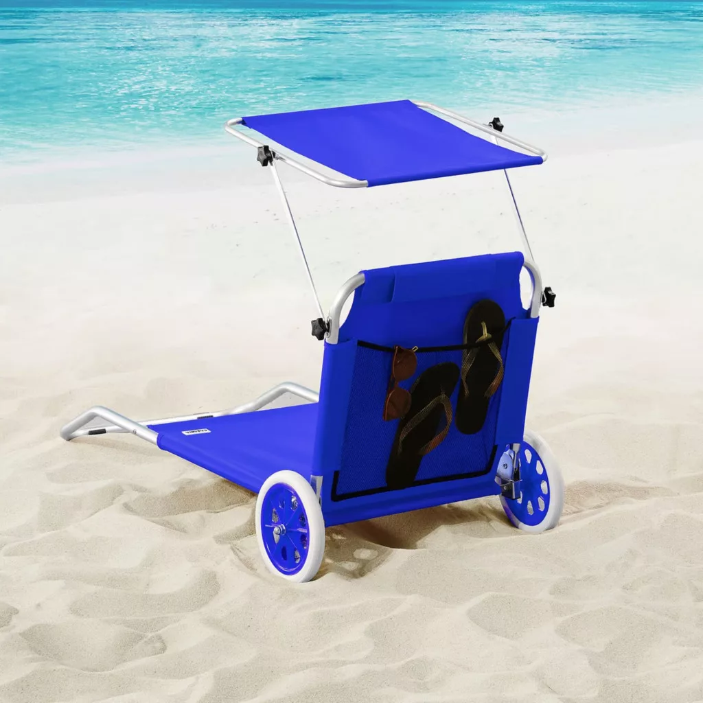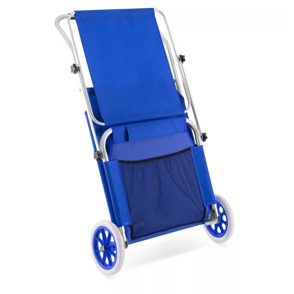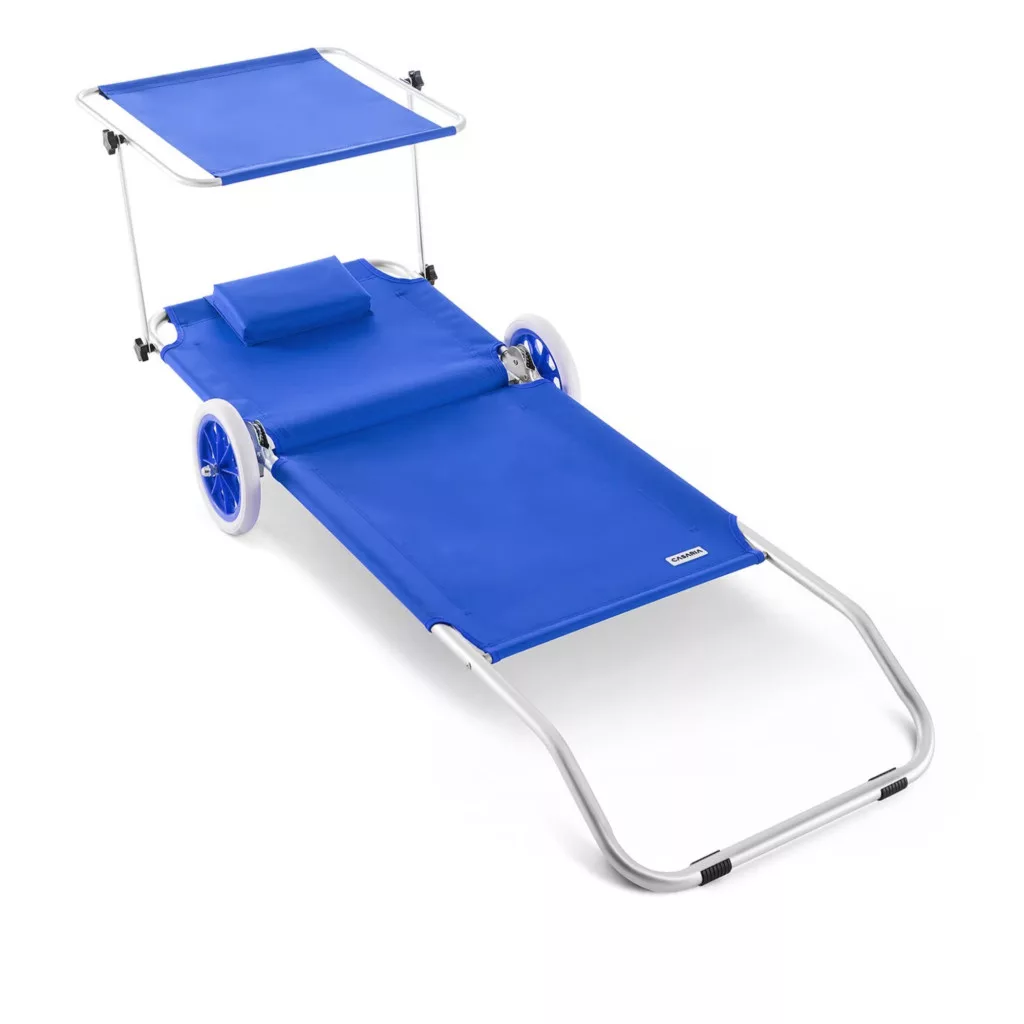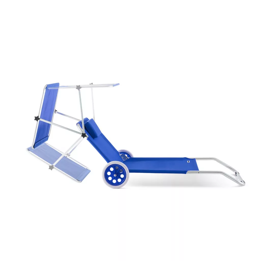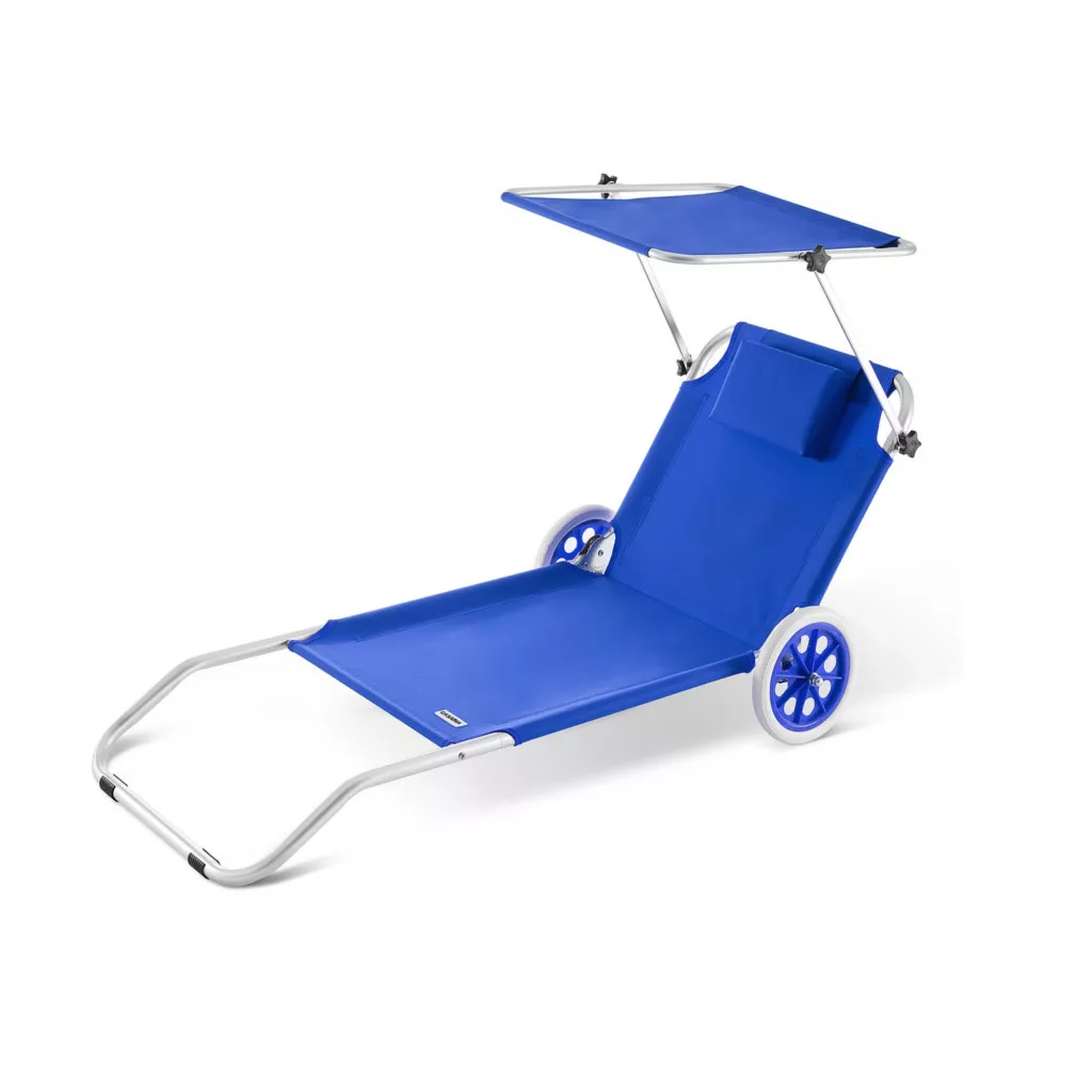 Kerti napozóágy kerekekkel és napellenzővel strandszék alumínium kék kültéri nyugágy