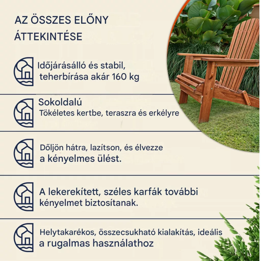 A fa kerti szék nemcsak praktikus, hanem stílusos megoldás is.