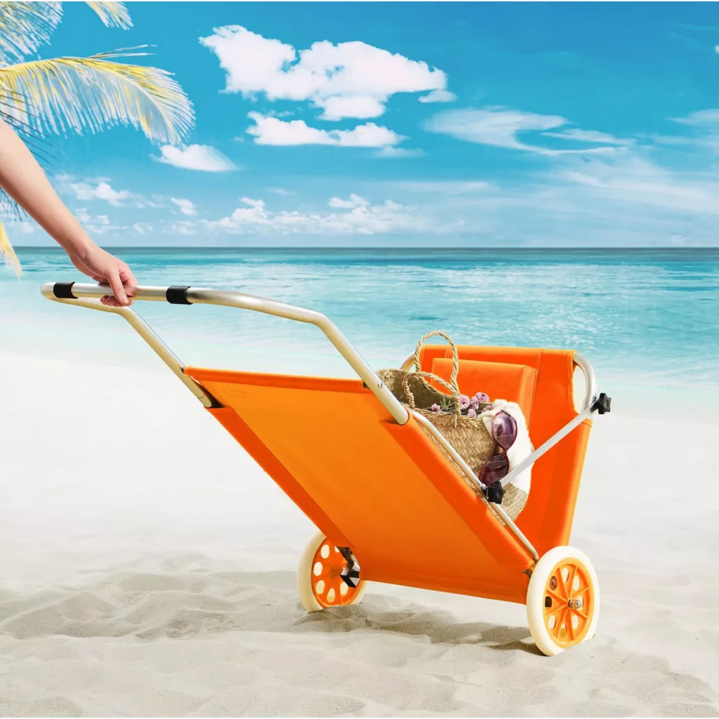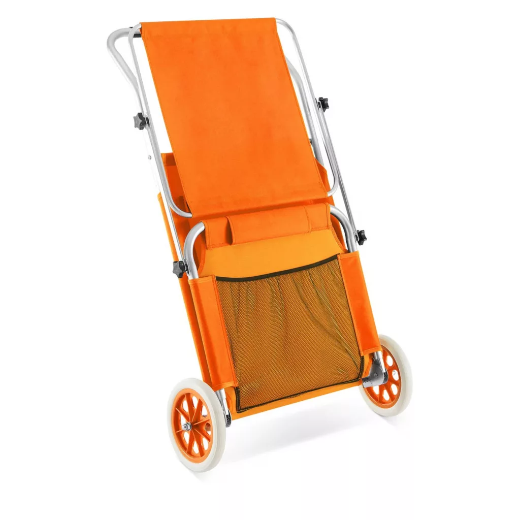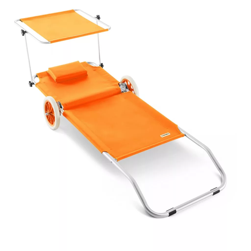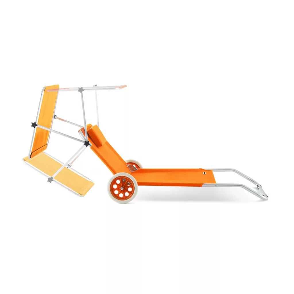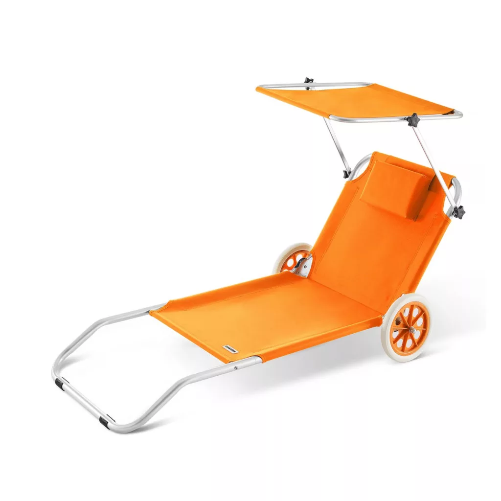 Kerti napozóágy kerekekkel és napellenzővel strandszék alumínium narancs kültéri nyugágy