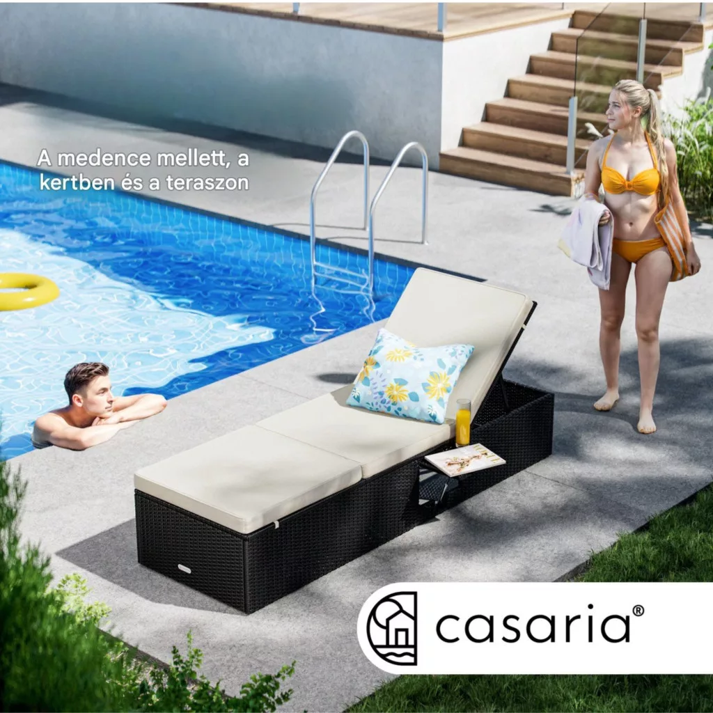 A párnás napozóágy garantálja a maximális komfortérzetet.
