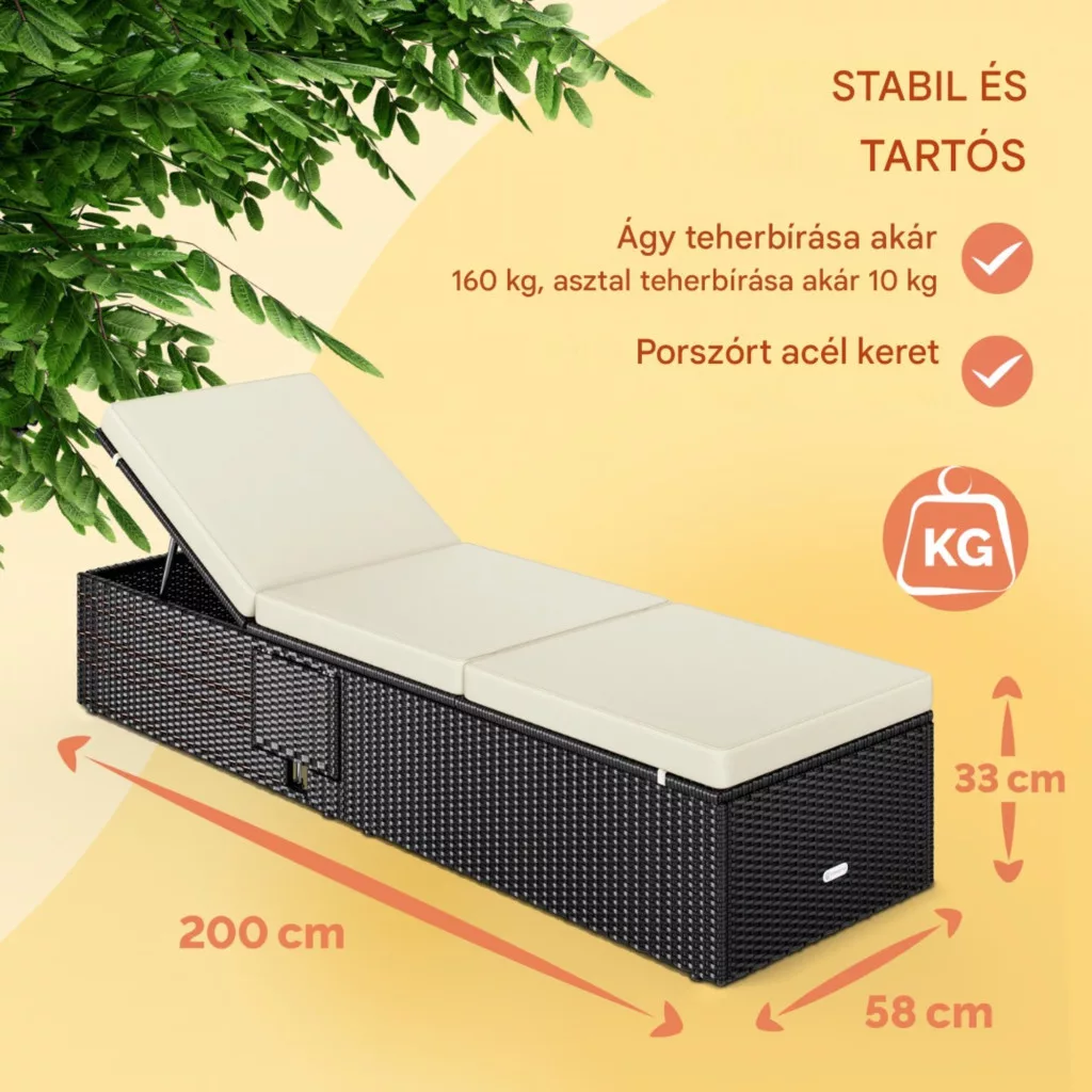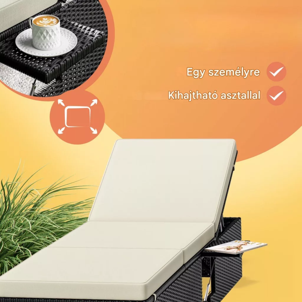 A kerti napozóágy asztallal még kényelmesebbé teszi a pihenést.
