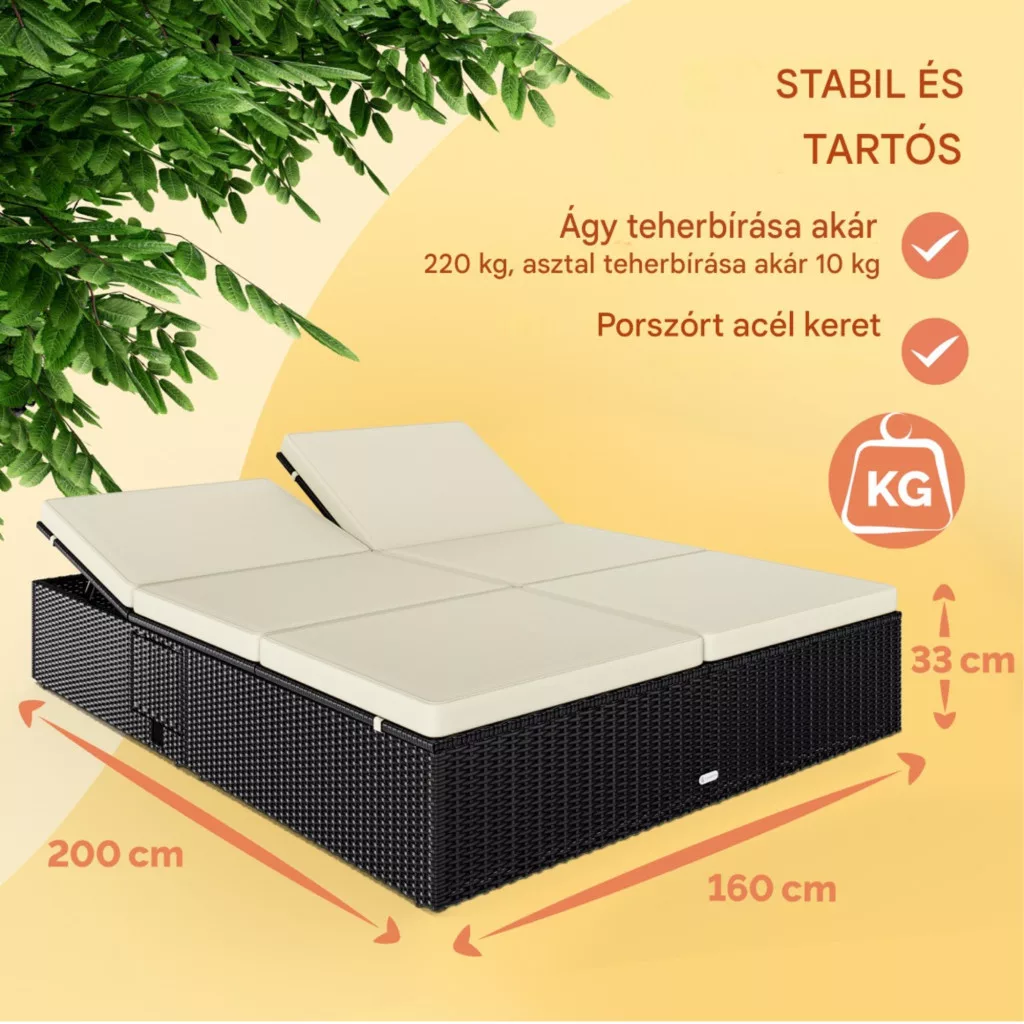 Polyrattan kerti napozóágy XXL dupla 200x160x33 cm fekete/krém