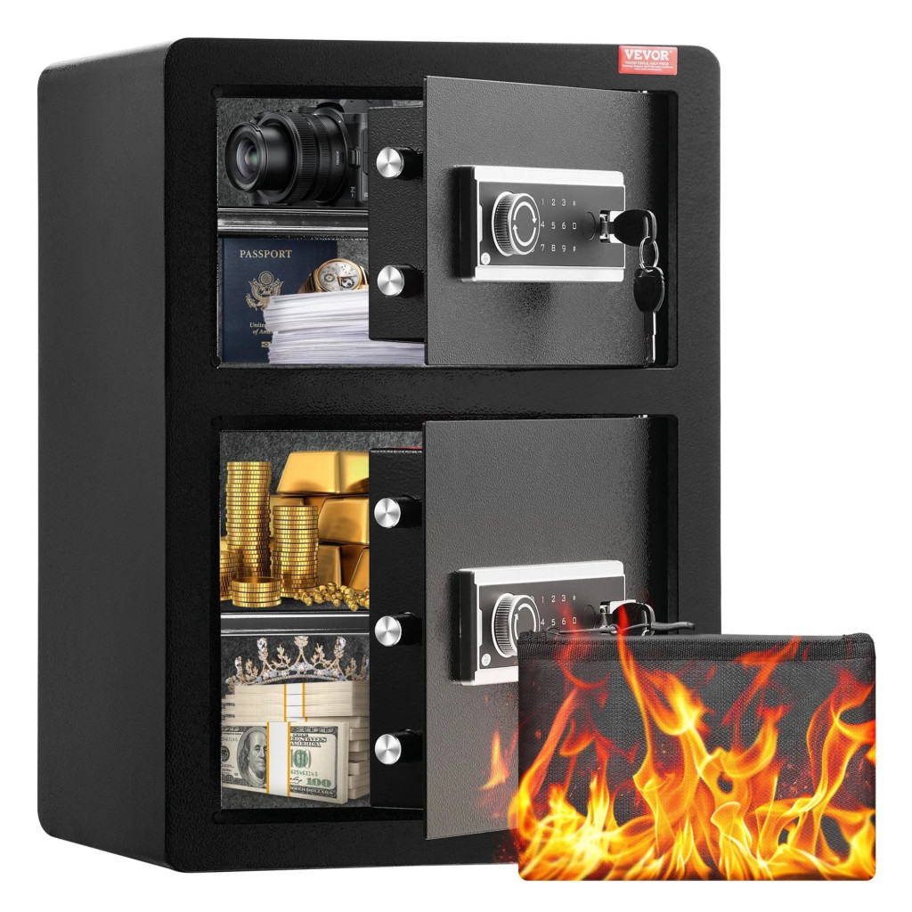 Kétszárnyú digitális széf tűzálló pénztasakkal kétajtós széf 99 literes kapacitás