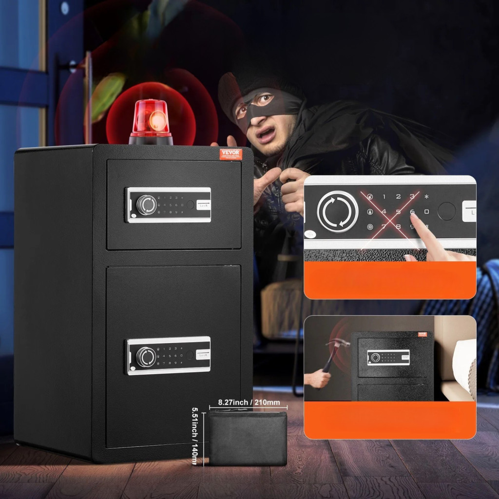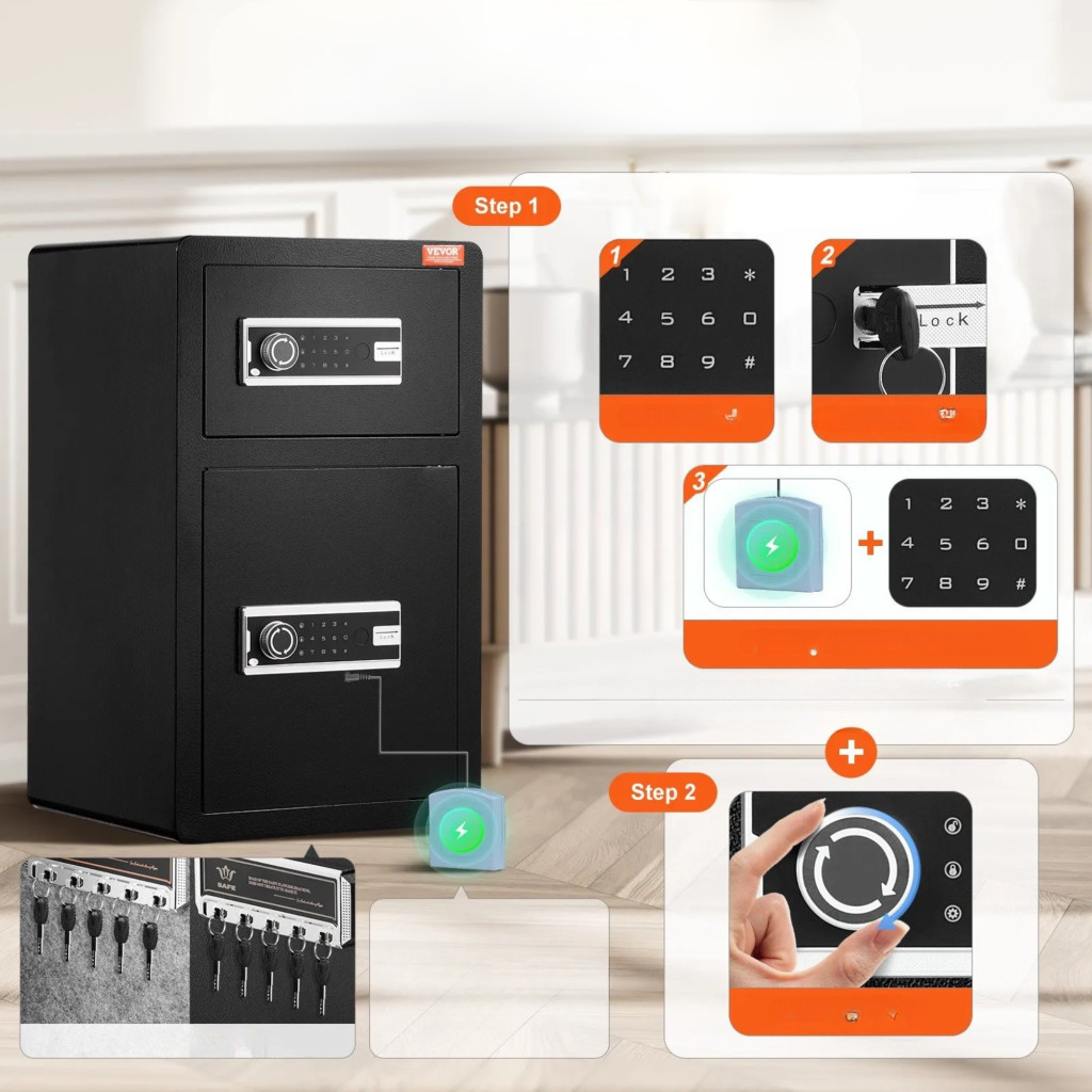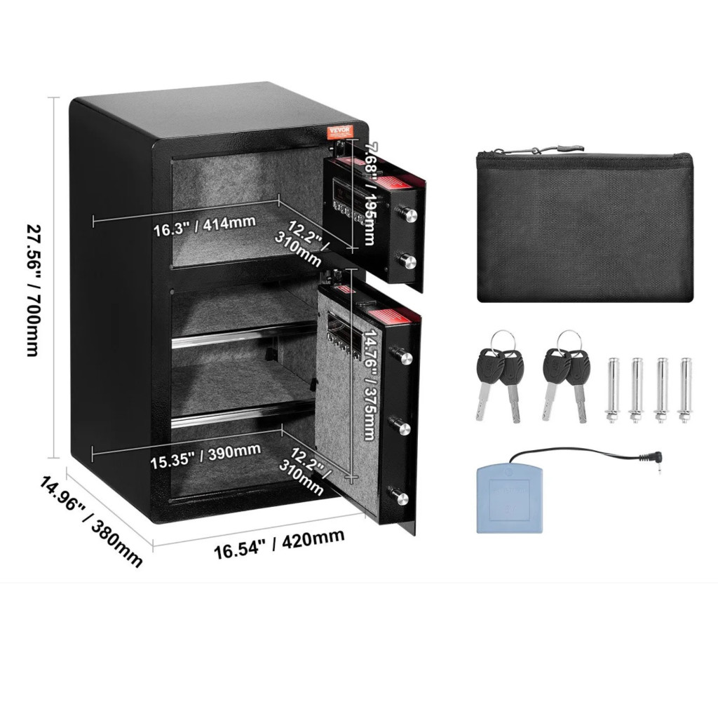 Kétszárnyú digitális széf tűzálló pénztasakkal 127 literes kapacitású kétajtós széf