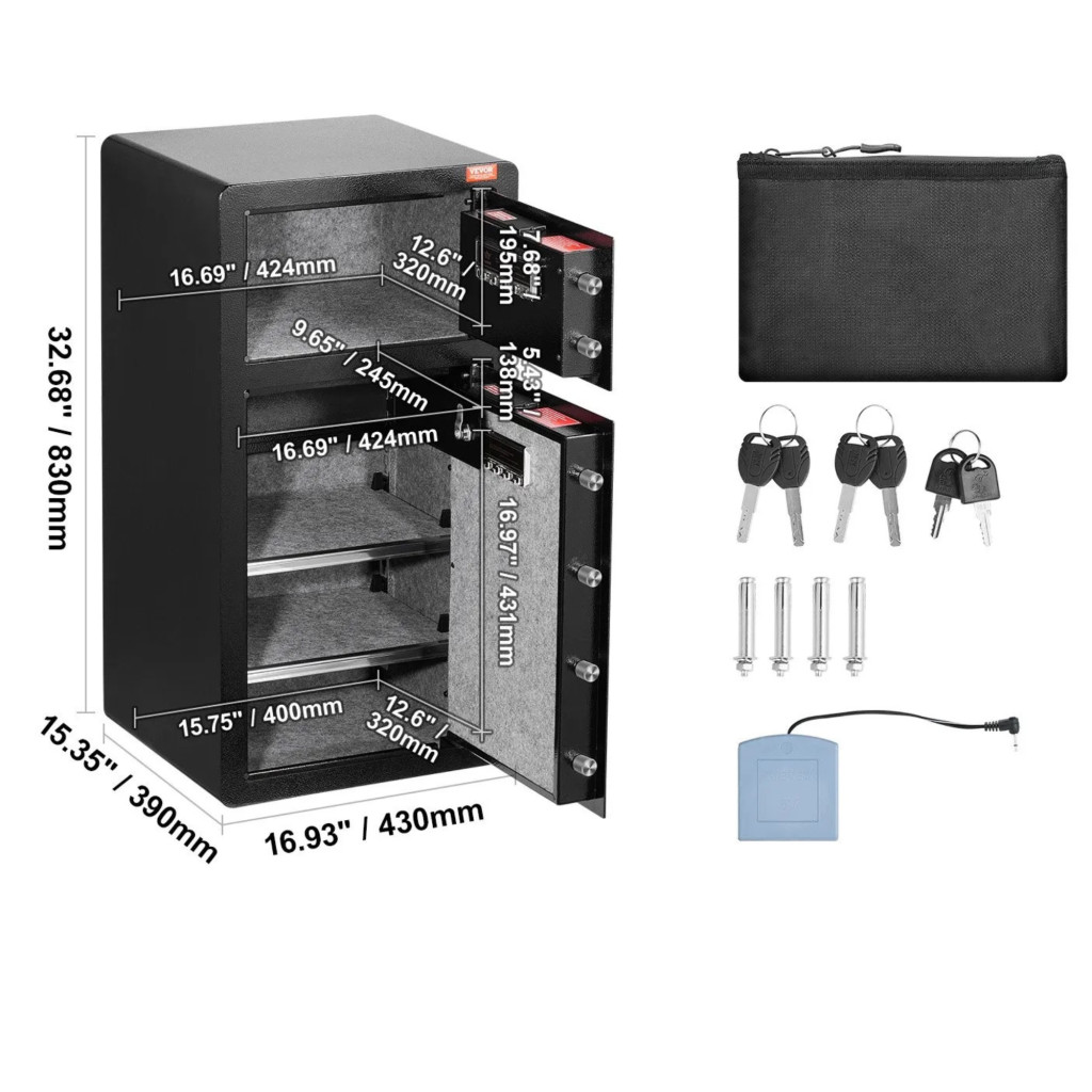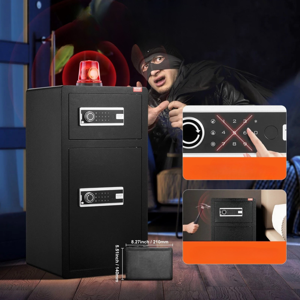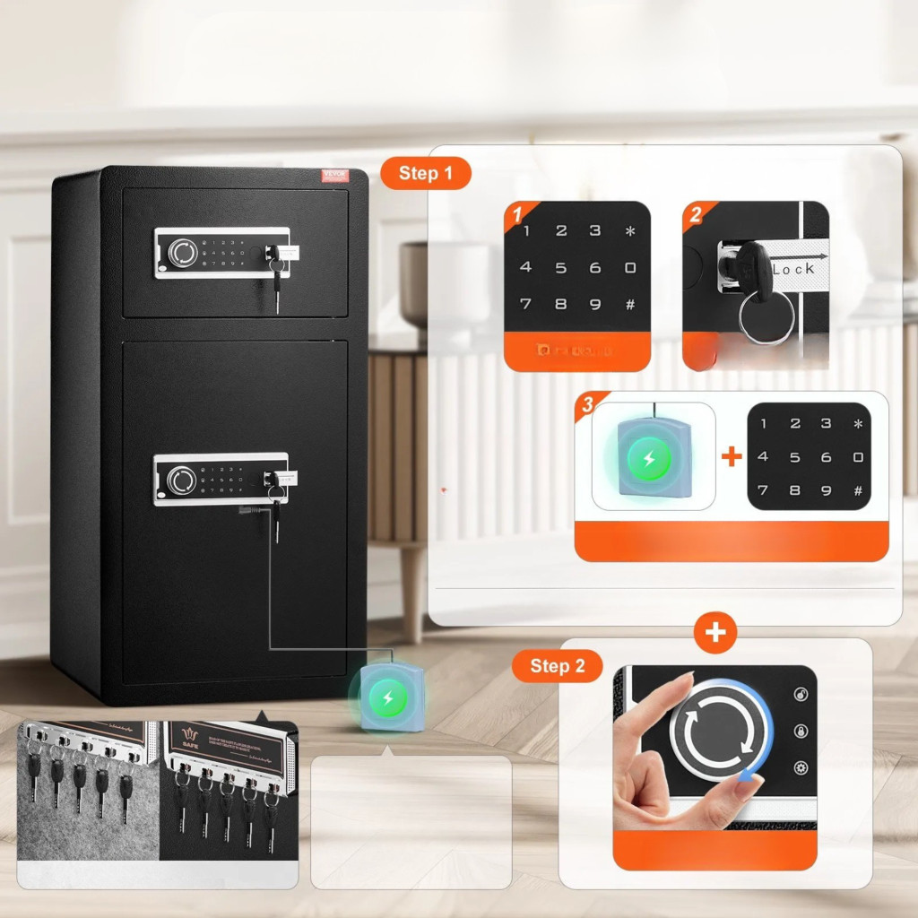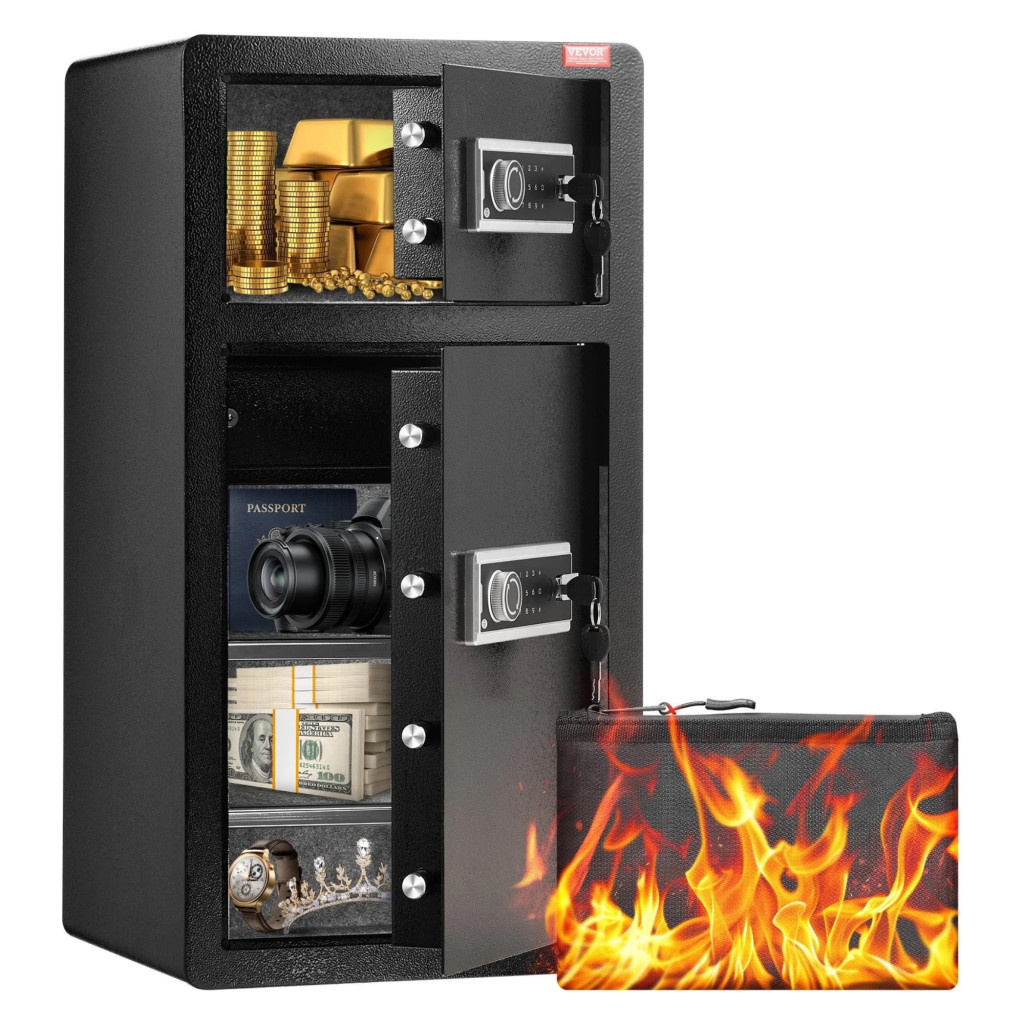 Kétszárnyú digitális széf tűzálló pénztasakkal kétajtós széf 156 literes kapacitás