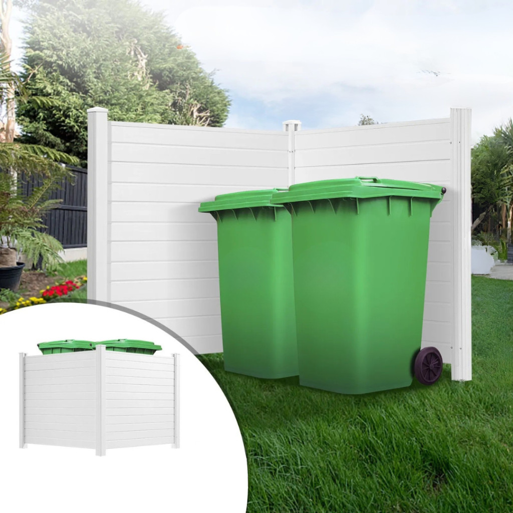 A két elemből álló kialakítás rugalmas elhelyezést tesz lehetővé, így sarokban és egyenes vonalban is könnyen alkalmazható. A teljes takarást biztosító méret hatékonyan csökkenti a zavaró látványelemeket, és nyugodtabb kerti összképet teremt.