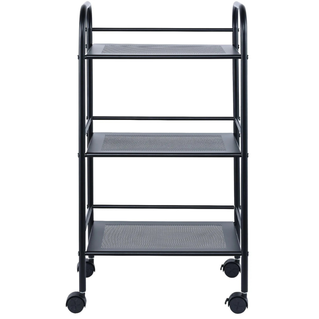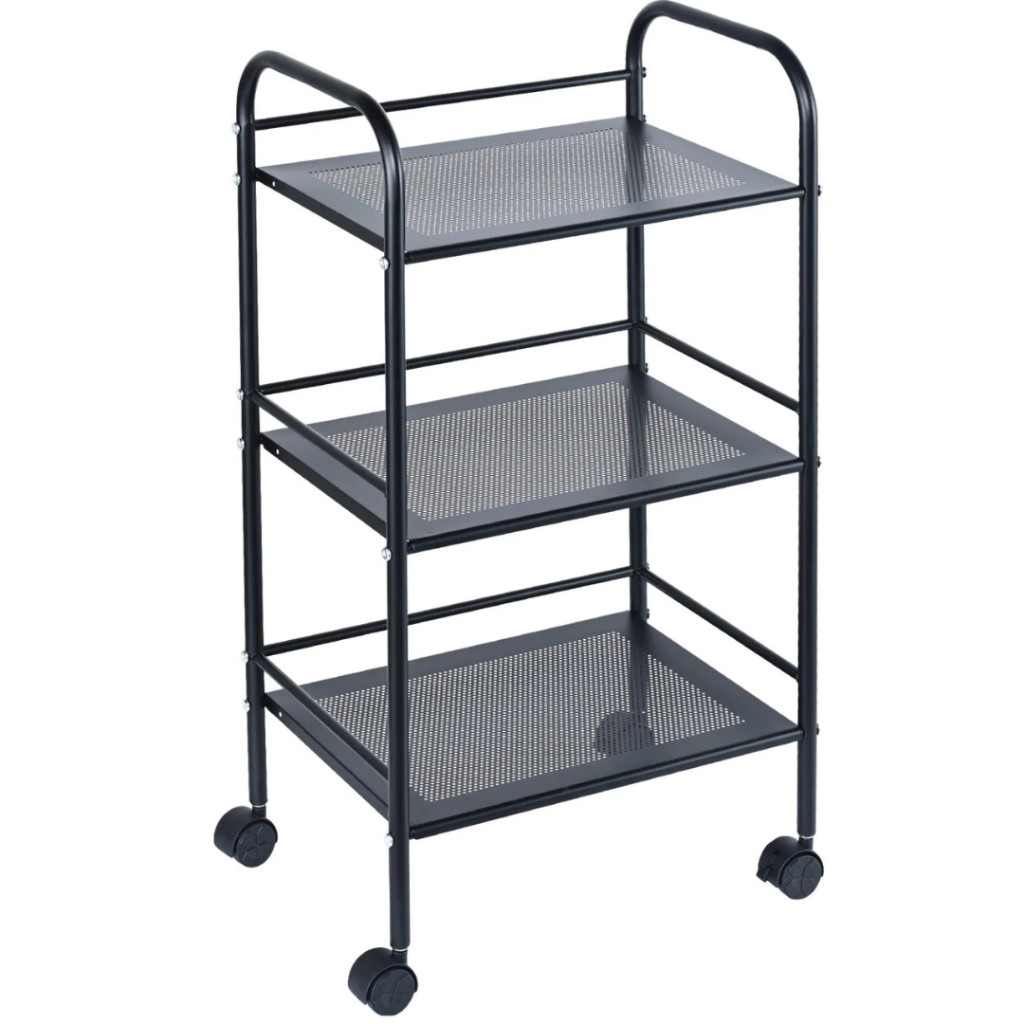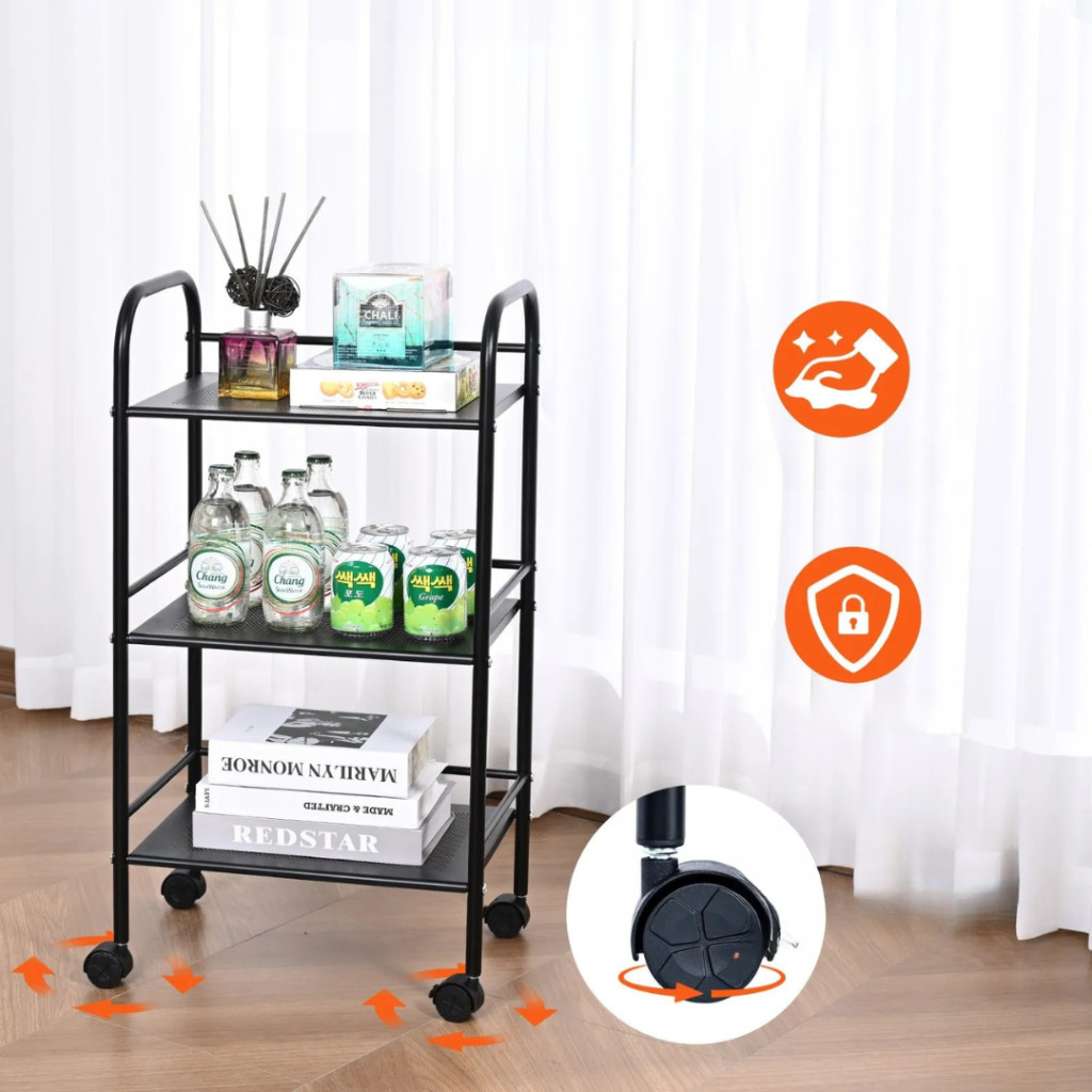 3 szintes acél gurulós tárolókocsi fekete 90 kg teherbírású 400x285x748 mm konyhai tálalókocsi