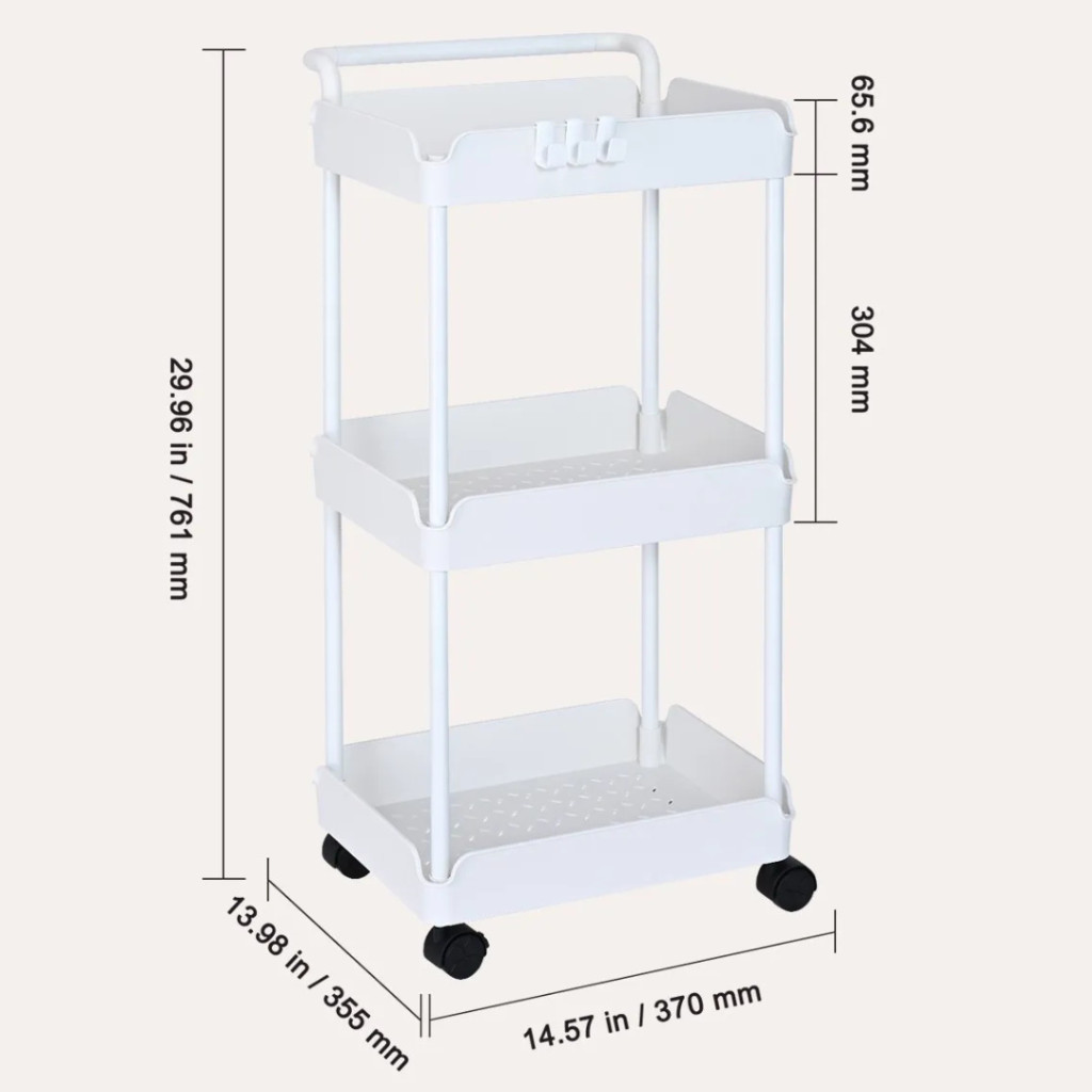 Ez a 3 szintes fehér gurulós tárolókocsi tökéletes választás mindazok számára, akik helytakarékos, könnyen mozgatható és esztétikus tárolási megoldást keresnek. Legyen szó otthonról vagy irodáról, ez a kocsi egyszerre kínál praktikumot és modern dizájnt.