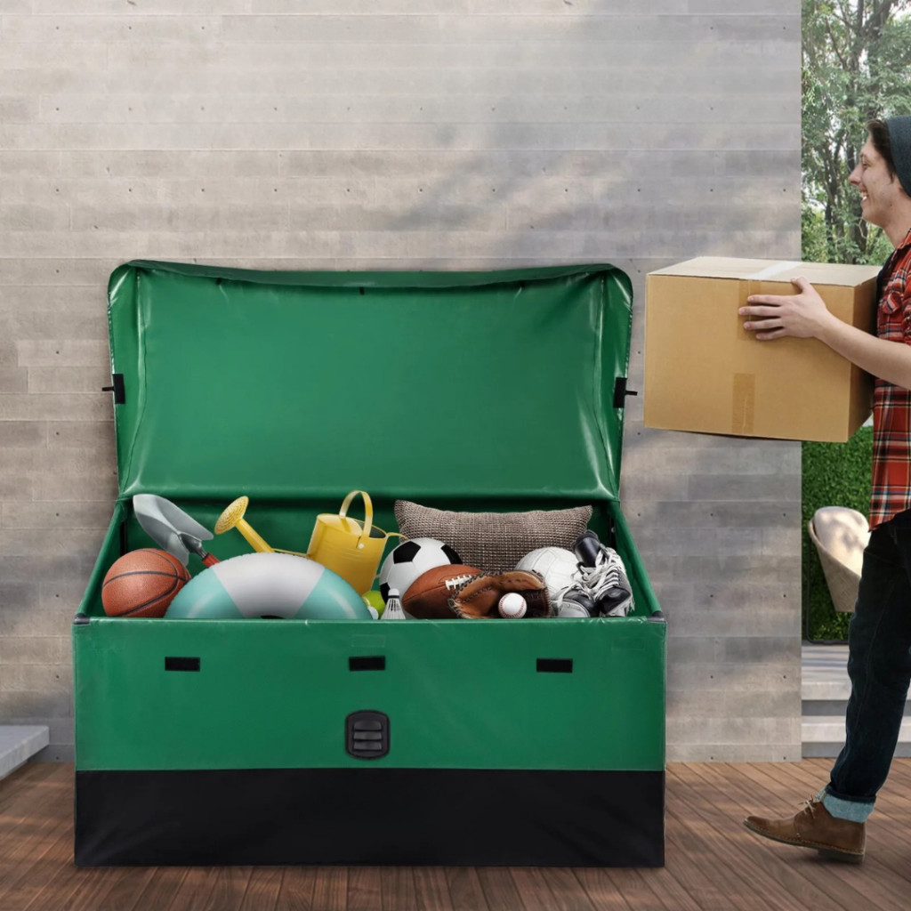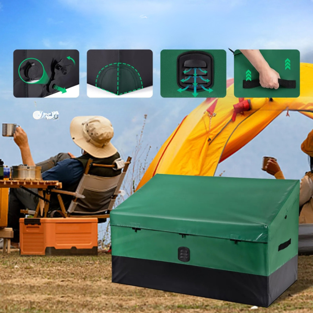 440 literes kültéri tárolódoboz PE ponyvás, vízálló kivitelben könnyű, jól szellőző kerti párnatartó